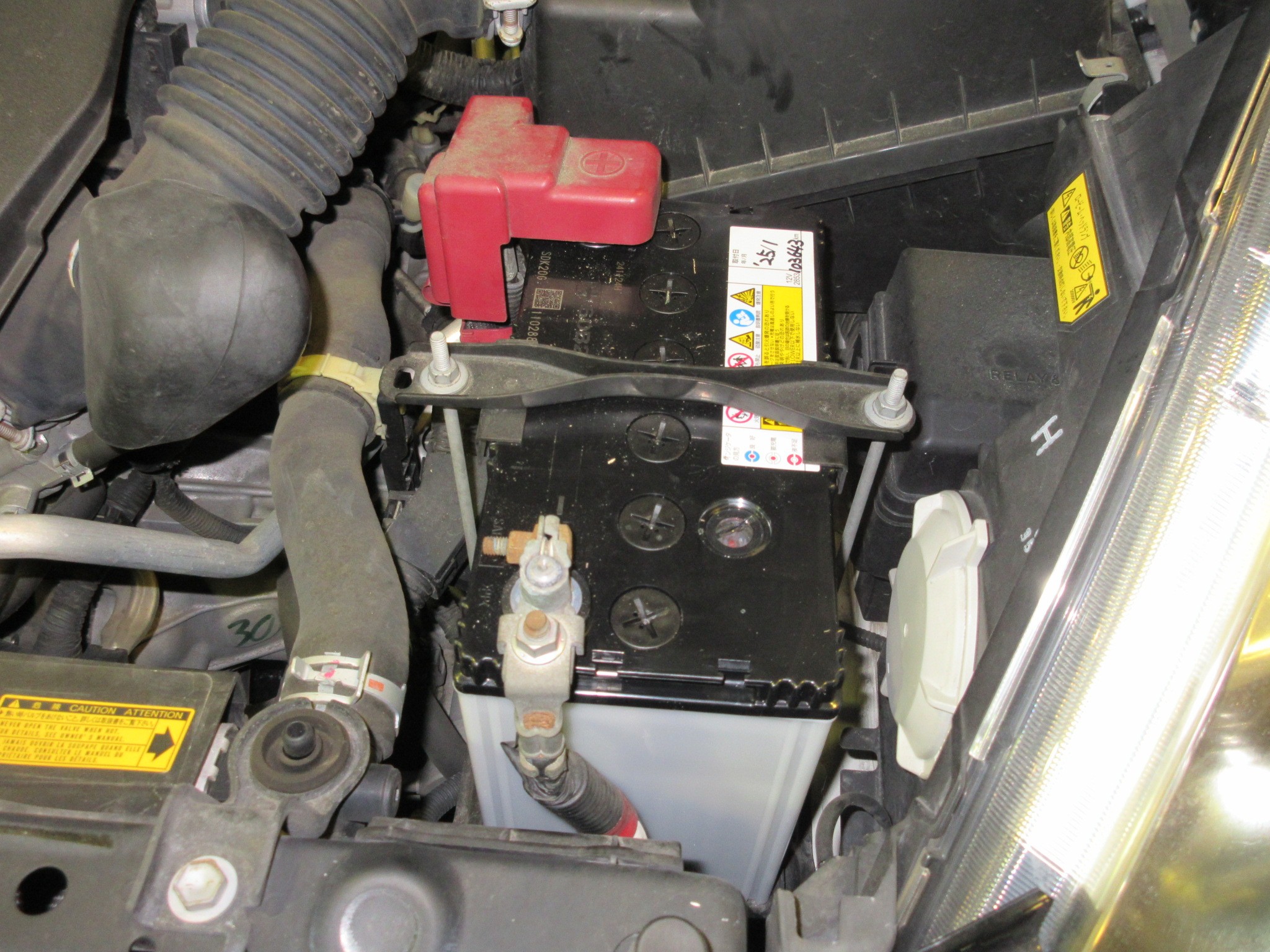 エンジンルームに鎮座しているバッテリーは、約7年半使用しているバッテリーなんです。