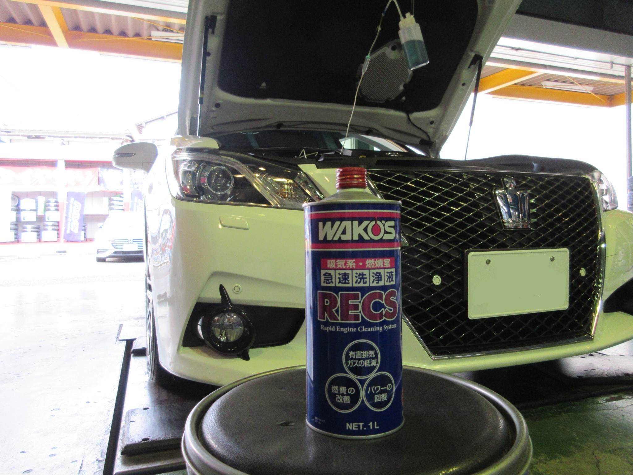 RECSはエンジンを分解する事無く、エンジン内に洗浄液を吸入させて清掃出来るケミカルです。