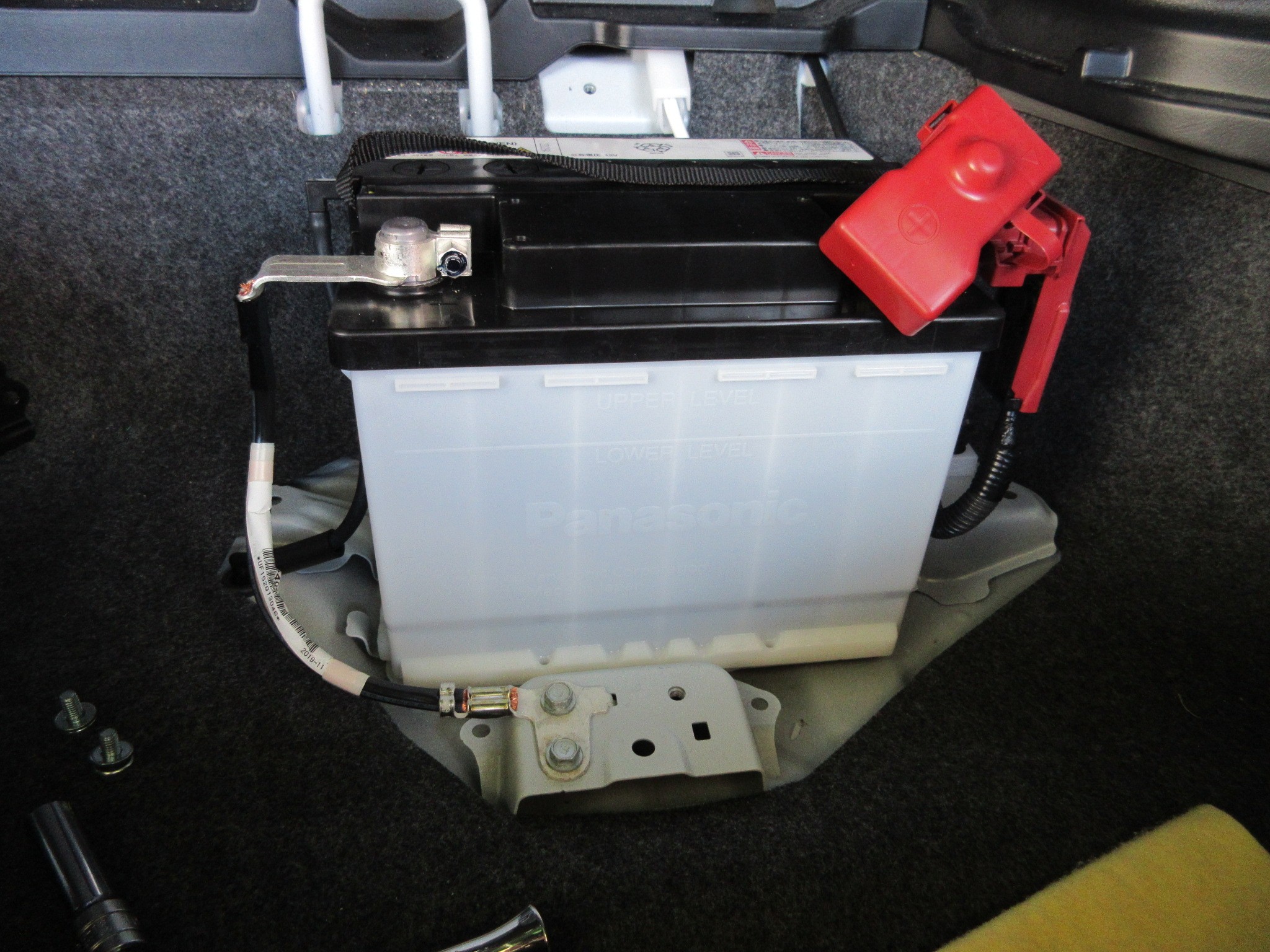 コチラのヴォクシーはハイブリッド車なので、始動用バッテリーが室内に搭載されています。