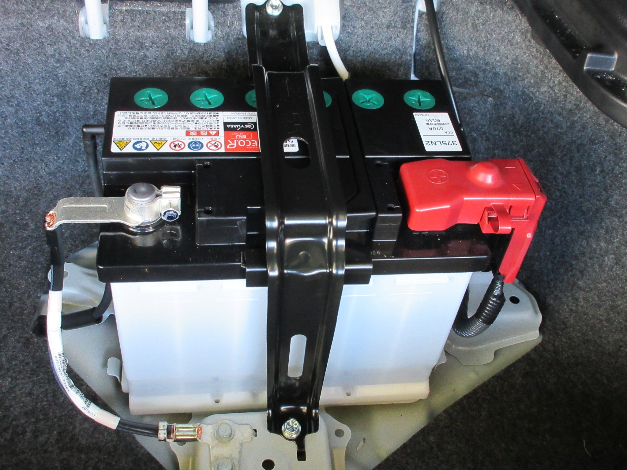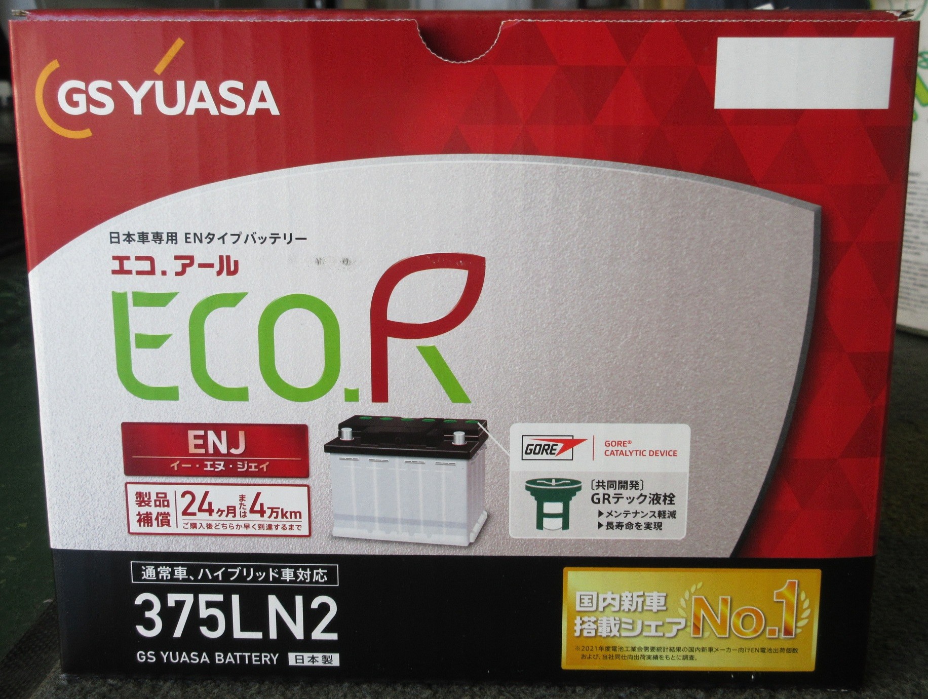 現状は新車からの純正バッテリーですが、今回は‶GS YUASA ECO.R ENJ”に交換します。