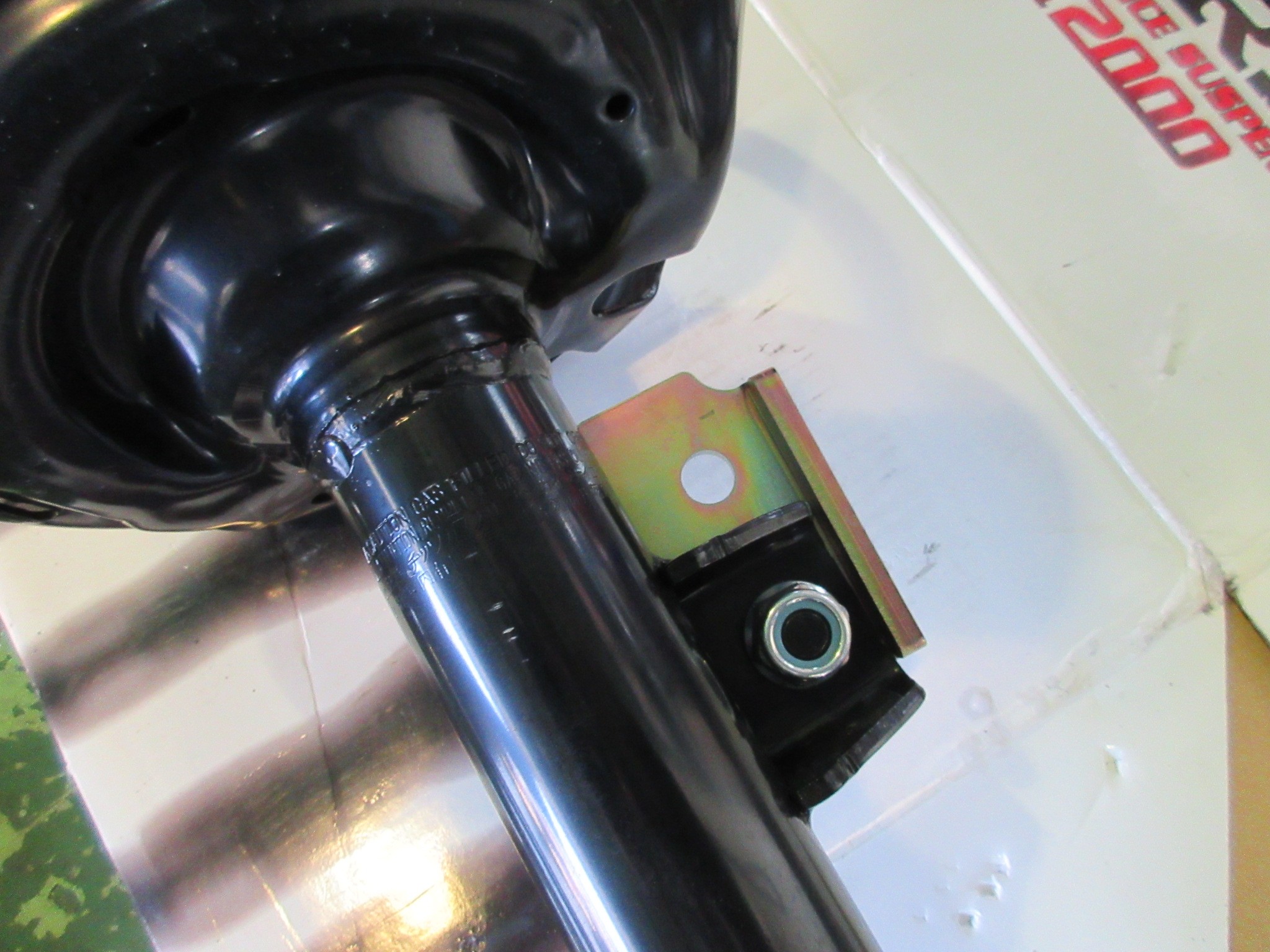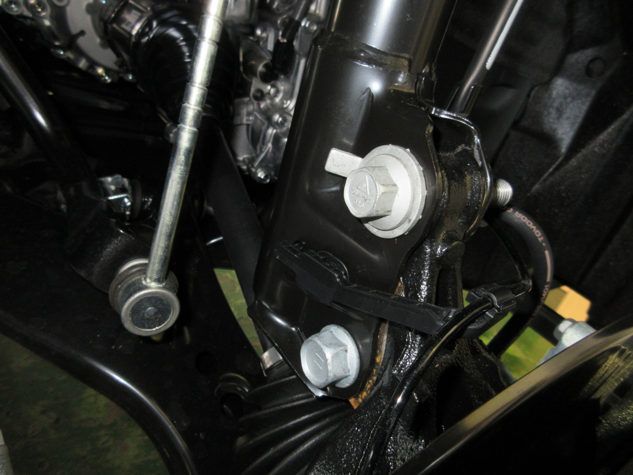 まずフロントから開始しますので、ショックアブソーバーを外します。