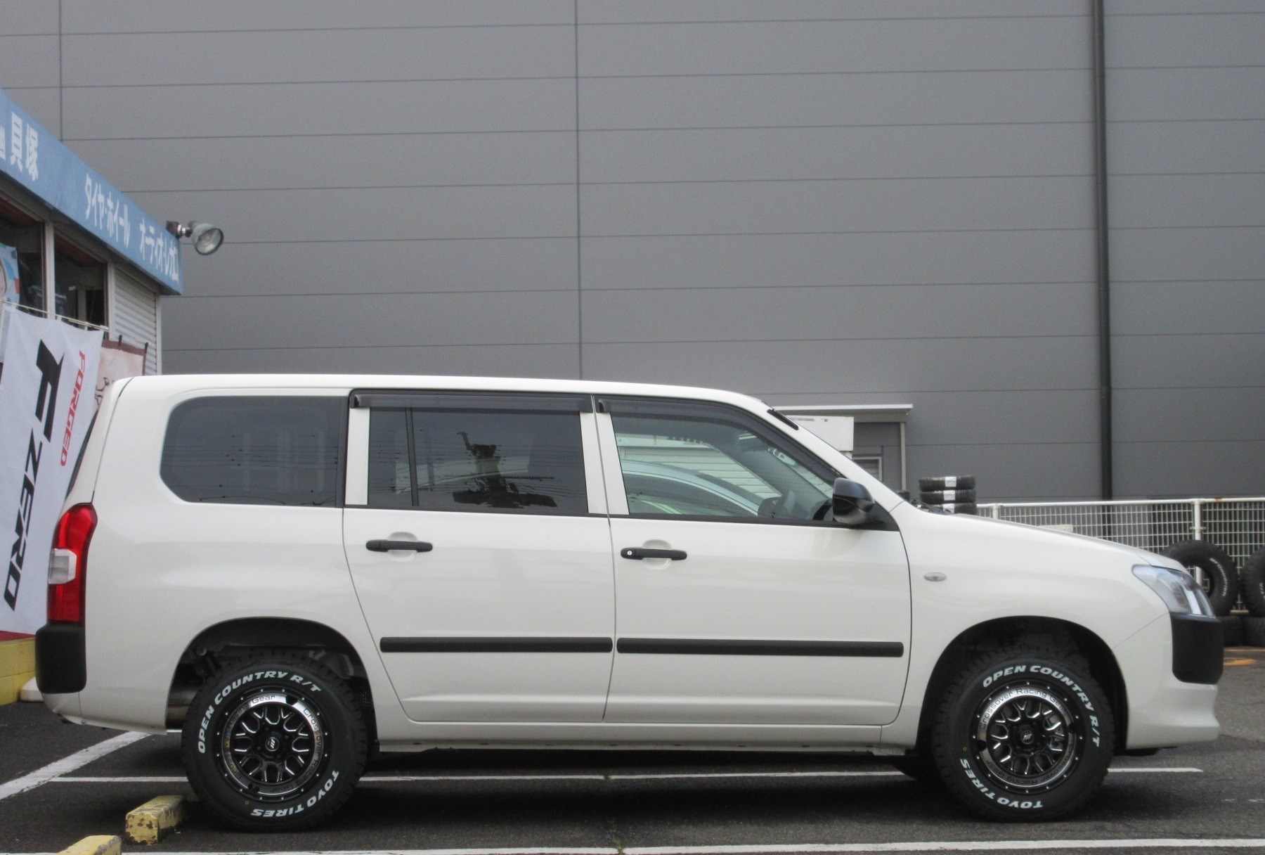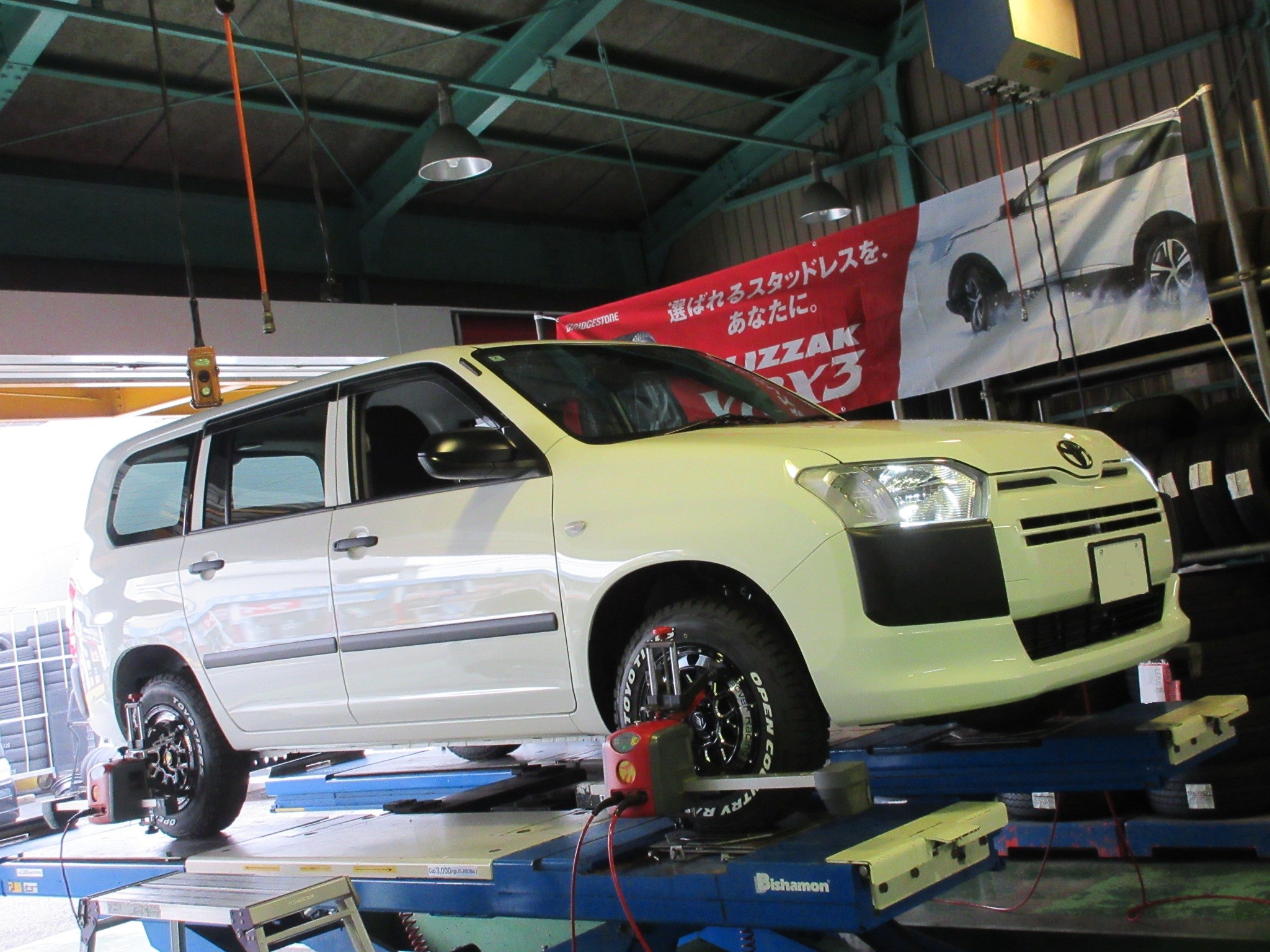 リフトアップカスタムを施したプロボックスハイブリッドのアライメント調整です。