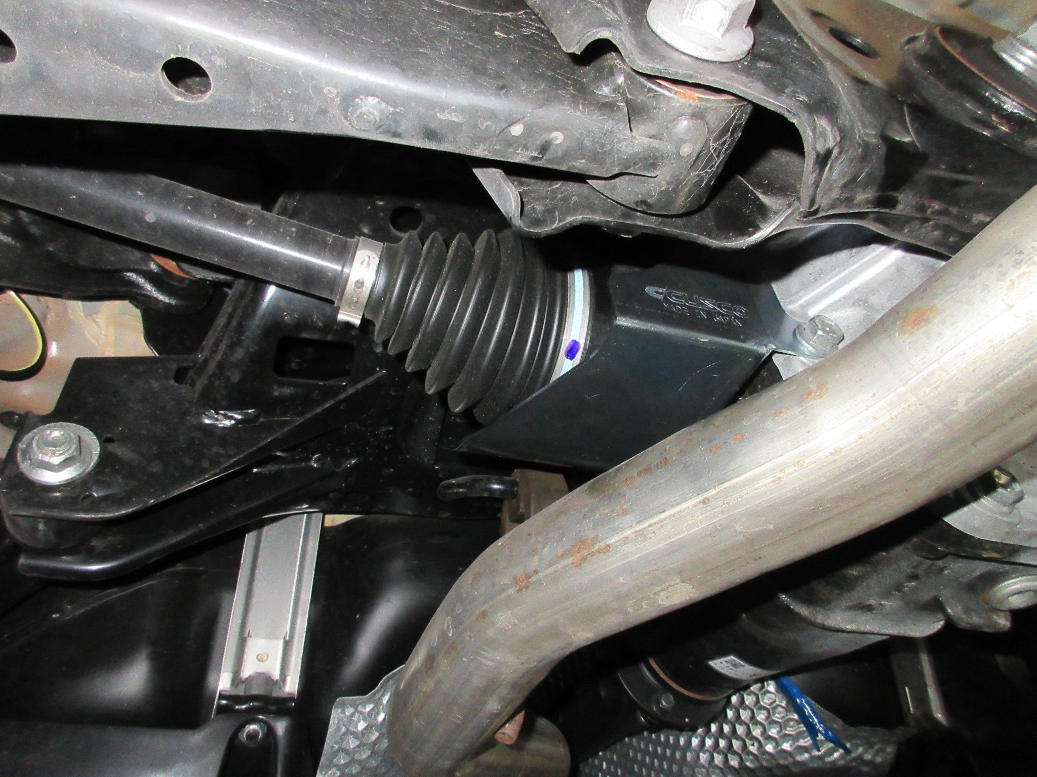なのでCUSCOのドライブシャフト遮熱板をボルトオンで取り付けますよ。