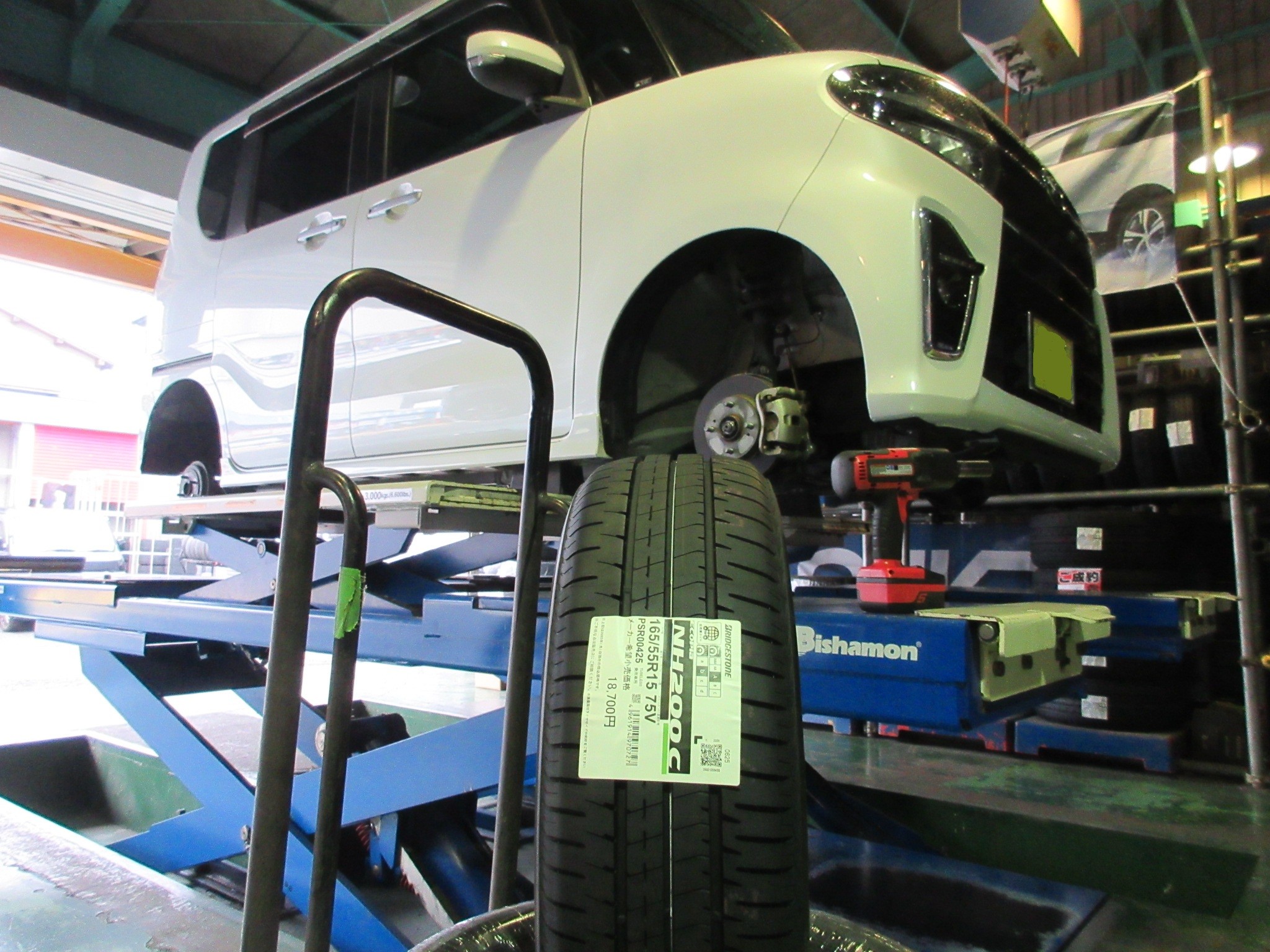 タント(LA650S)のタイヤ交換です。