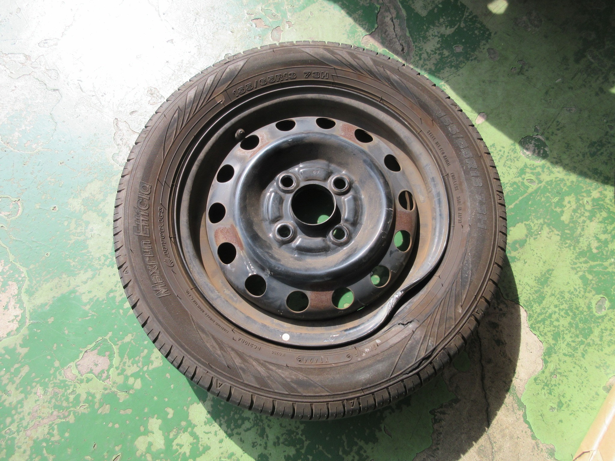 となると新たに準備する必要がある訳ですが、他のタイヤも古くなってる為に交換時期なので、お値打ち価格のアルミホイール&タイヤセットに交換するのもありですし、タイヤは4本新品にして、3本はホイールを使い回して1本だけ新品ホイールに交換するという手も使えます。
