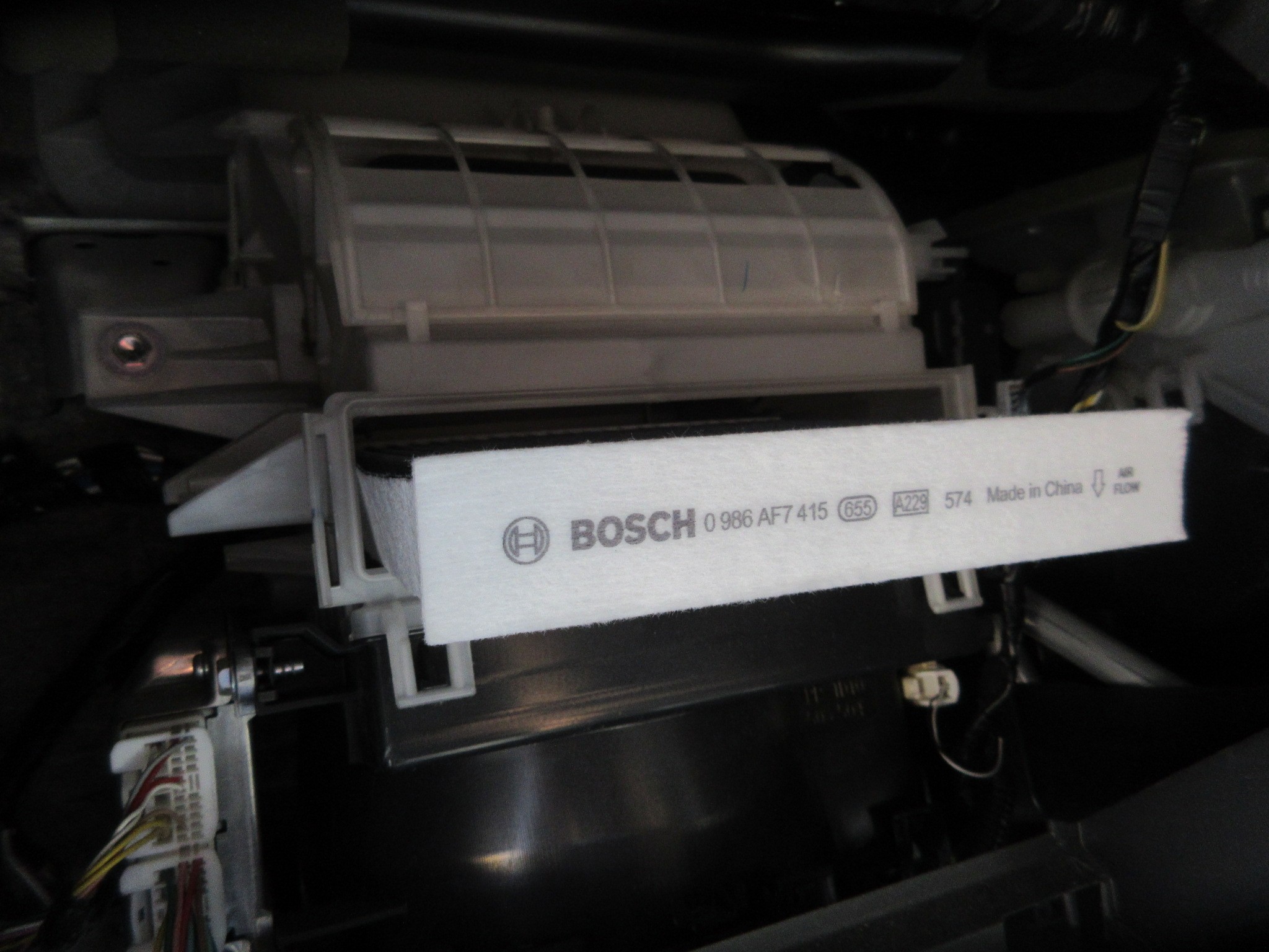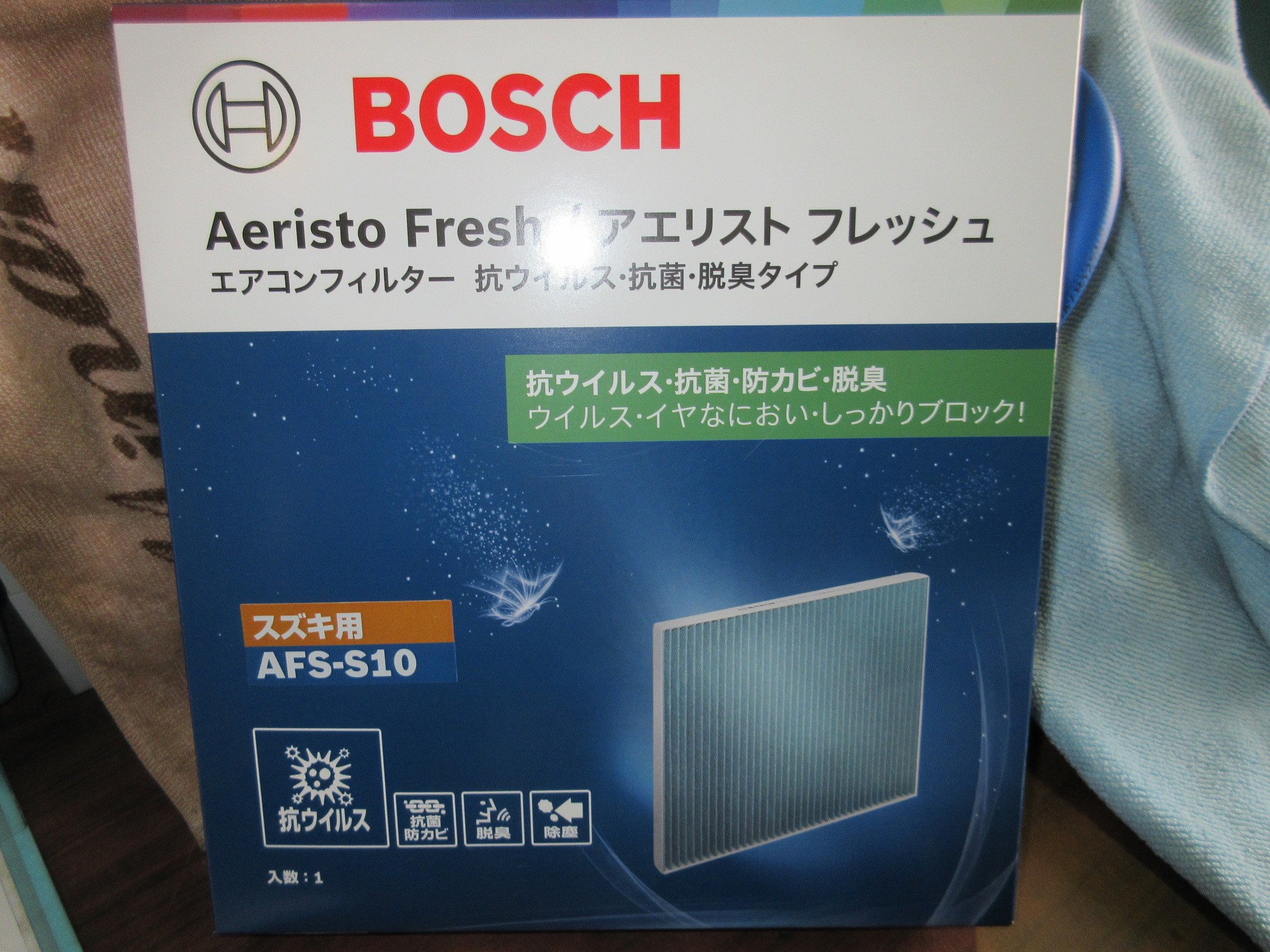 元々の純正フィルターは除塵タイプと言って、ゴミ取り機能のみのフィルターでしたが、防カビ等の“抗菌”機能や、嫌な臭いを防ぐ“脱臭”機能等も付加された『BOSCH Aeristo Fresh』に交換致します。