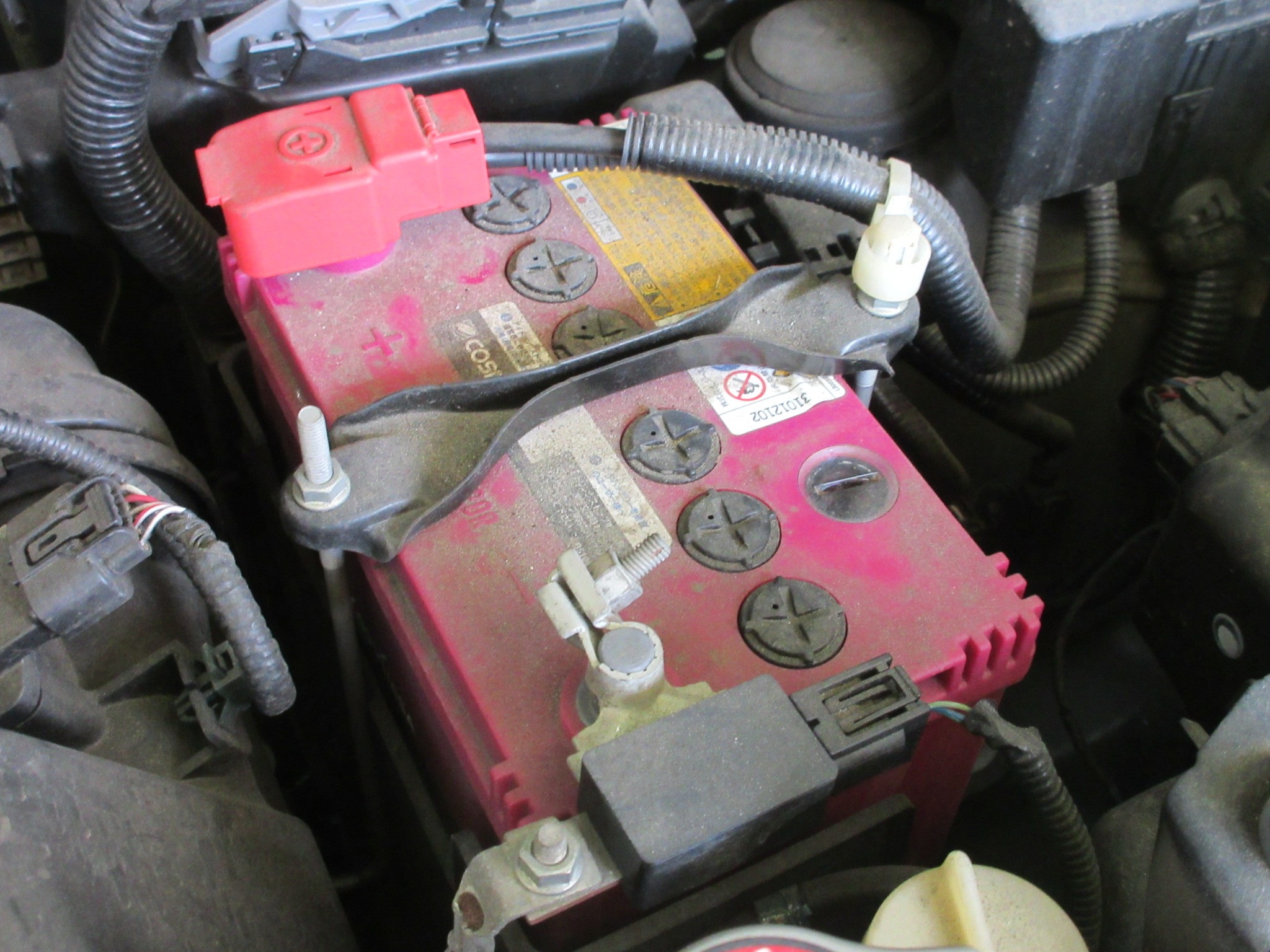 アイドリングストップシステムが強制解除されるほど劣化しているわけではありませんが、そこそこ劣化している状態なので、バッテリー上がりになる前に交換です。