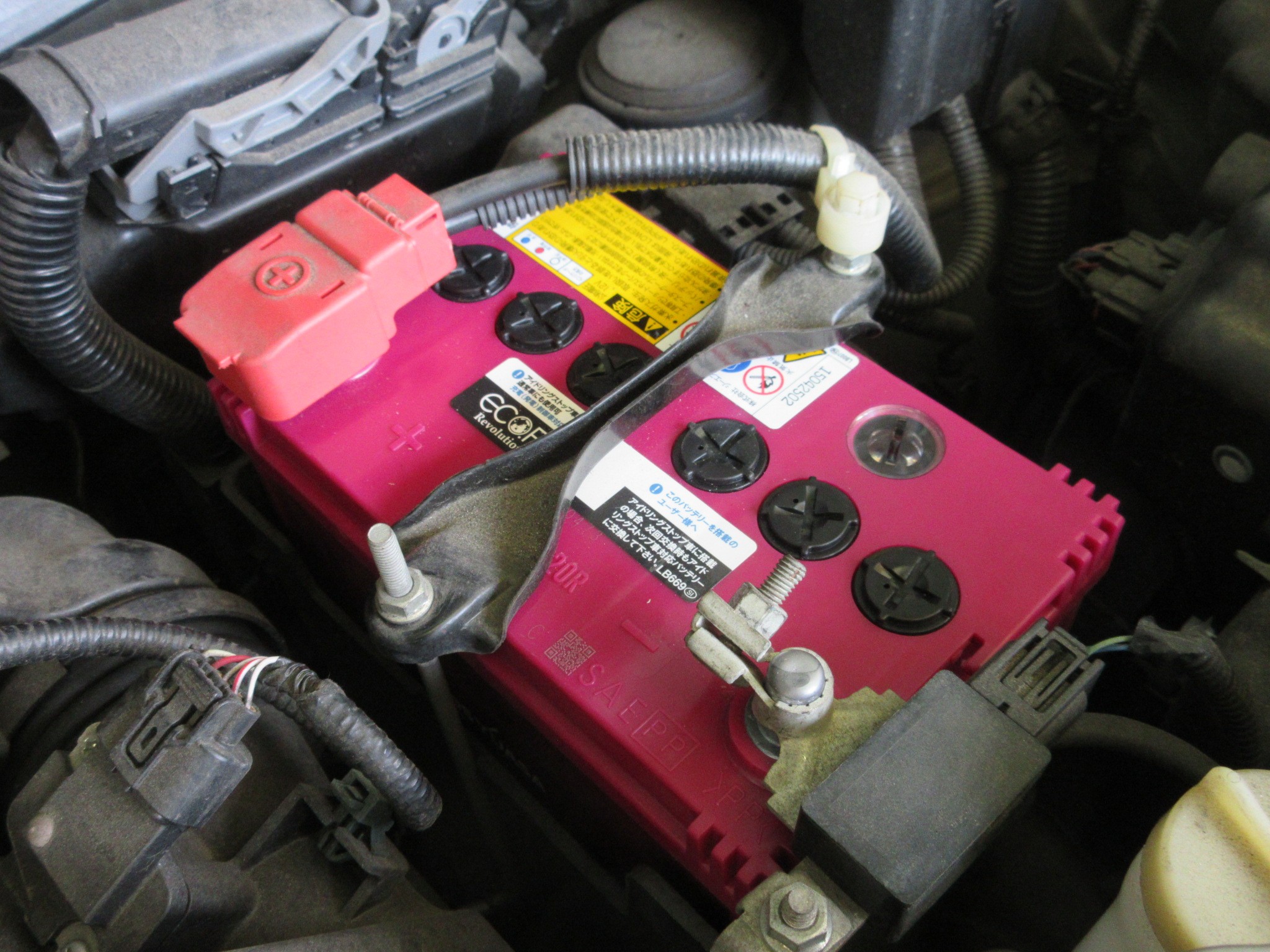 アイドリングストップ車にはこのピンクのバッテリーが付いてることも多いので、アイドリングストップ車の定番バッテリーですね。