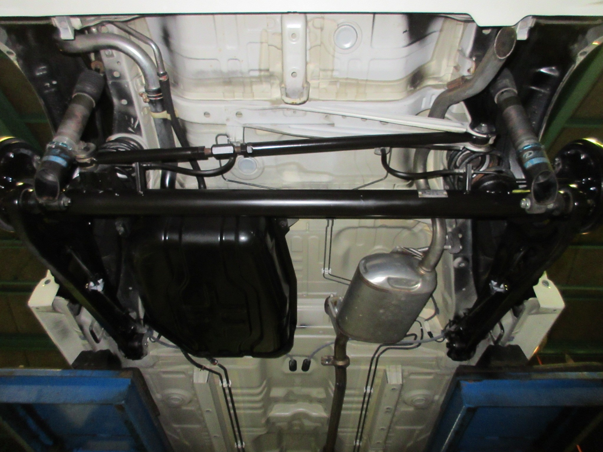 クロスメンバーやオイルパンにガソリンタンク等、純正で元々黒い部品の箇所に赤錆が浮き出してましたので、黒い部分をメインに防錆です。