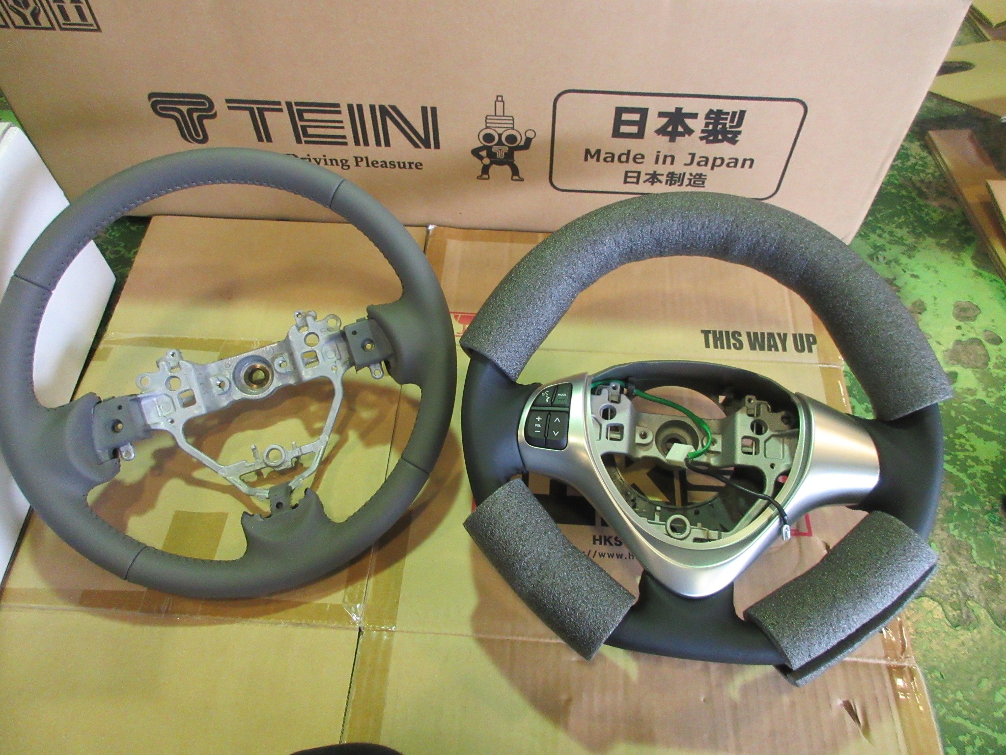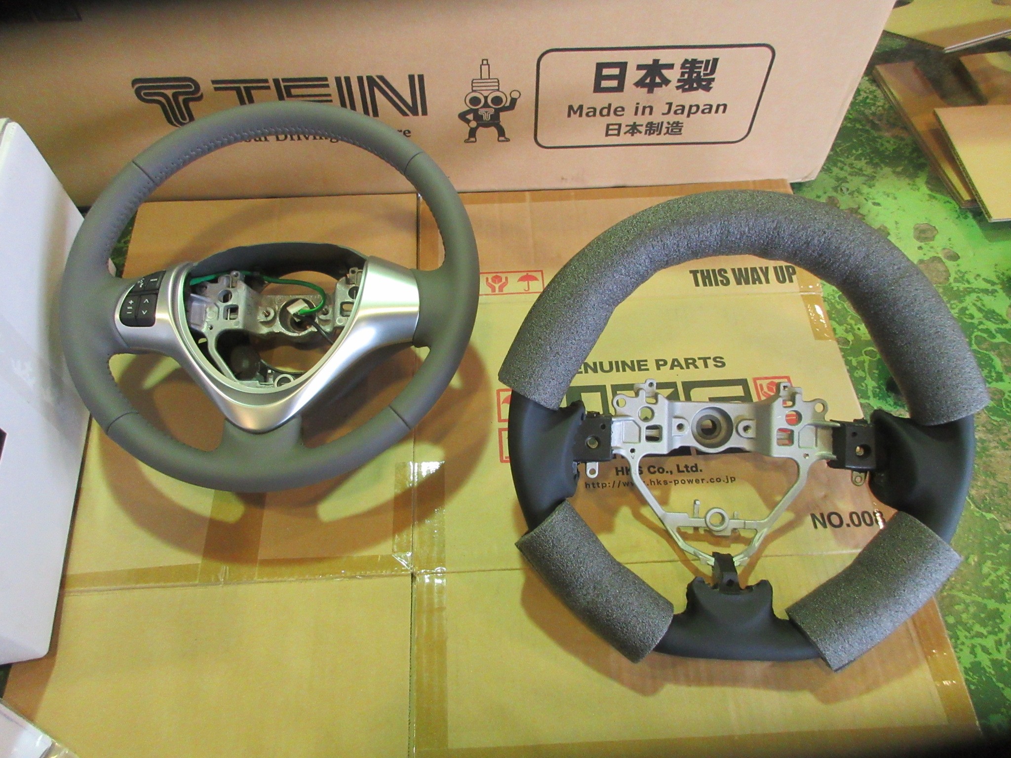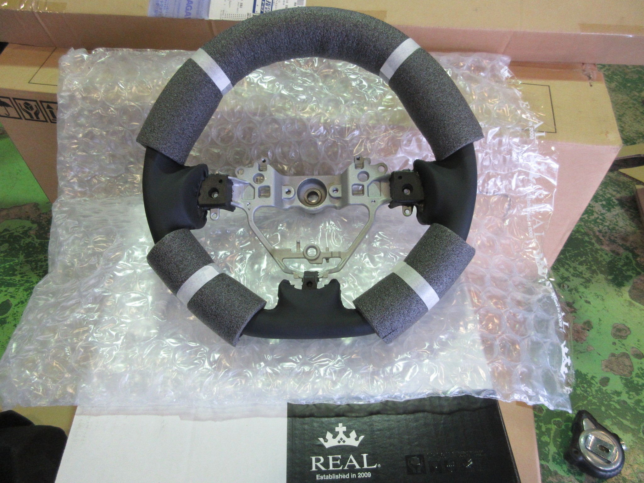 しかしREALのステアリングはしっかりと傷防止の緩衝材が巻かれて梱包されているので、グリップのレザー部分は見えてますが、全貌はまだまだ不明ですねw