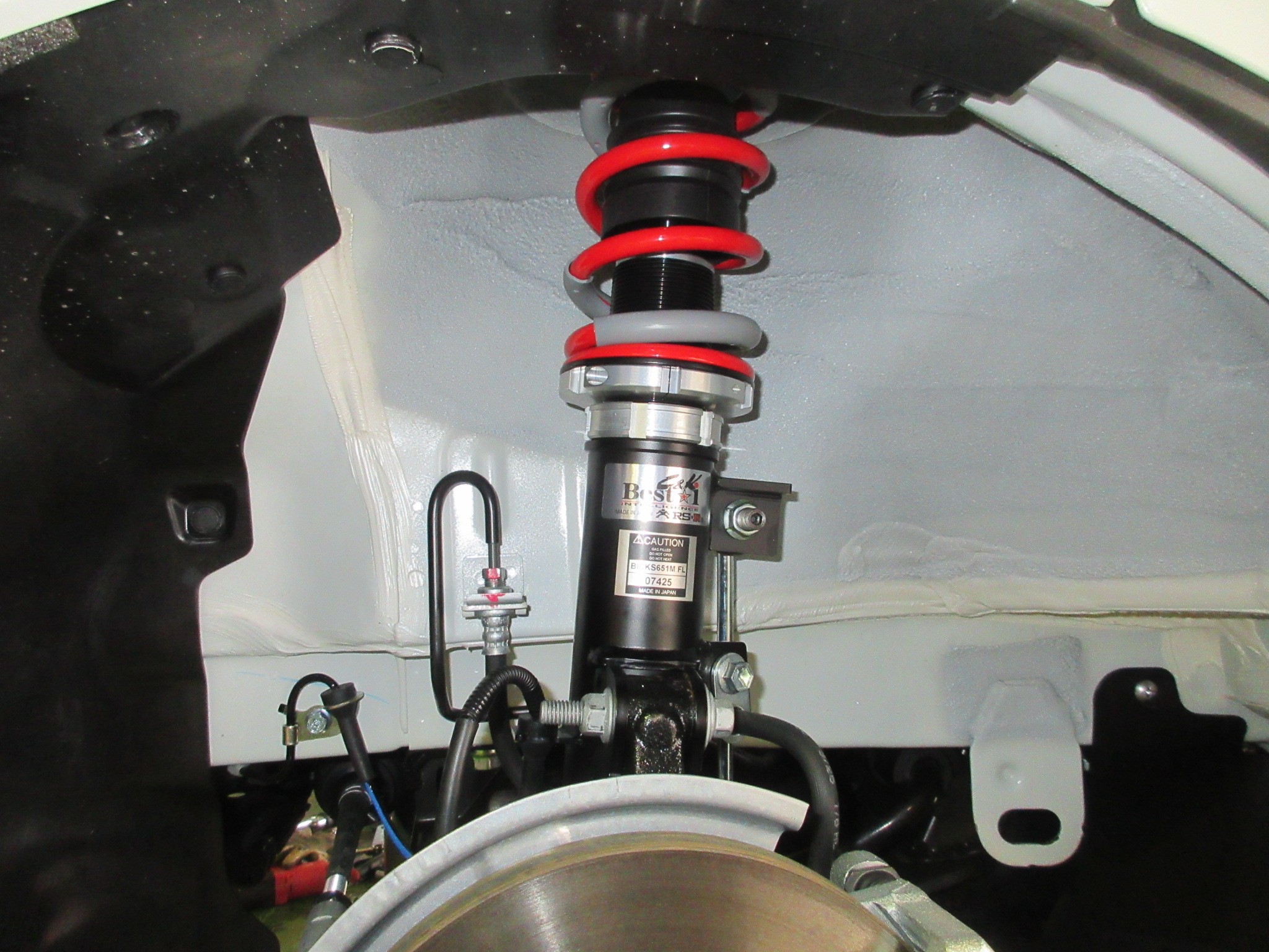 その後オーダー頂いた車高になる様に車高調をセッティングしてから、キャンバーボルトやラテラルロッドと一緒に車体に取り付けて完成。