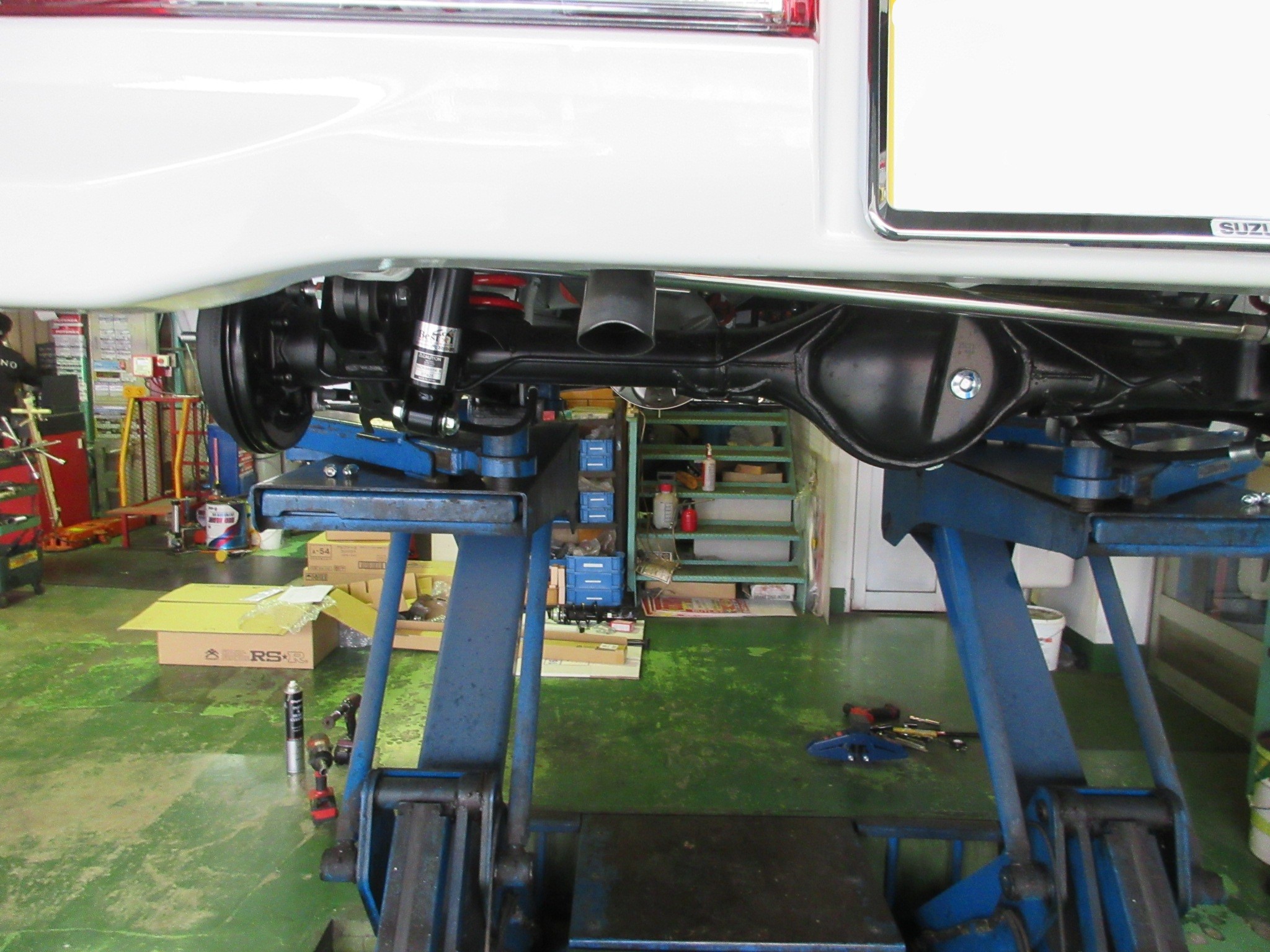 画像には無いですが、更にキャンバーが調整出来る様にAMTECSのキャンバーボルトもセットし、リヤはタイヤとボディの位置関係を補正する為に、RS★Rの調整式ラテラルロッドもセットします。