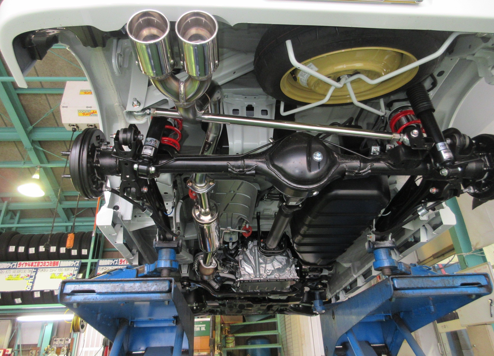 それでもロードクリアランス的には何の問題も無さそうなのは、元のかなり高めの純正車高が良い影響を与えている様に思います。