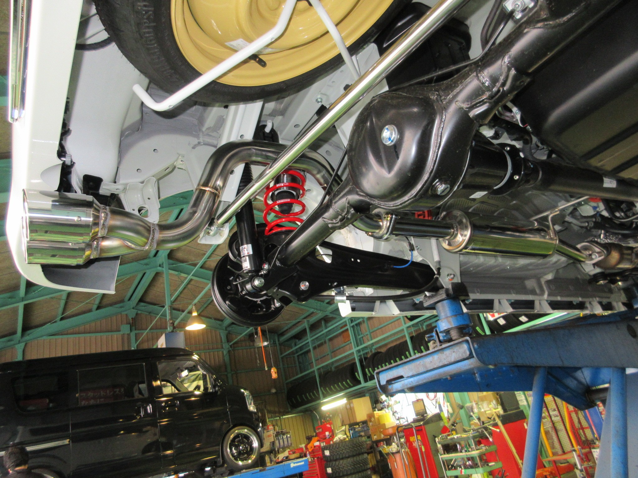エブリイワゴン(DA17W)をローダウンする為に車高調を取り付けます。