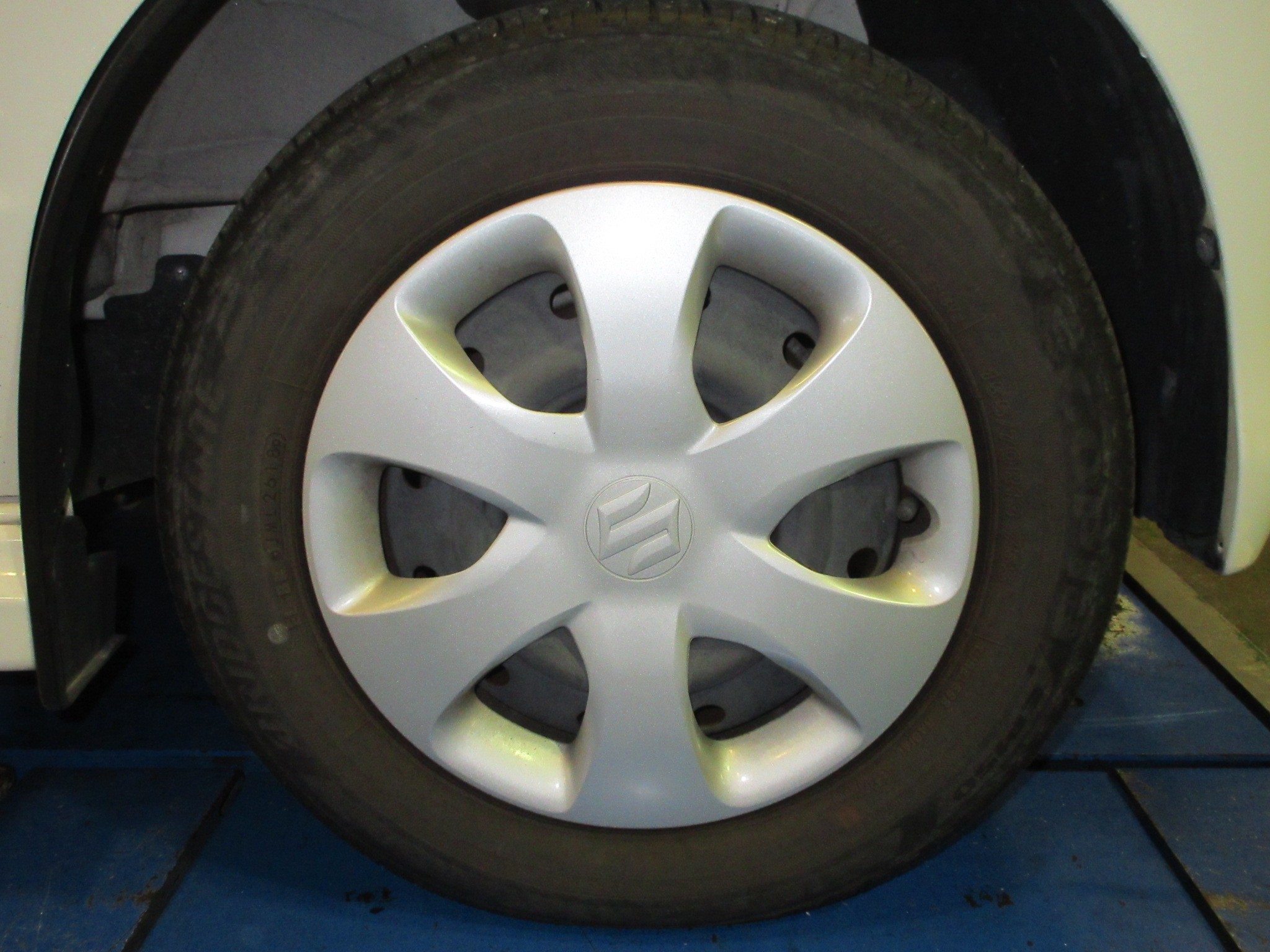 新品にタイヤを組み換えて、ホイールバランスを調整し、お車に装着したら交換作業完了です。