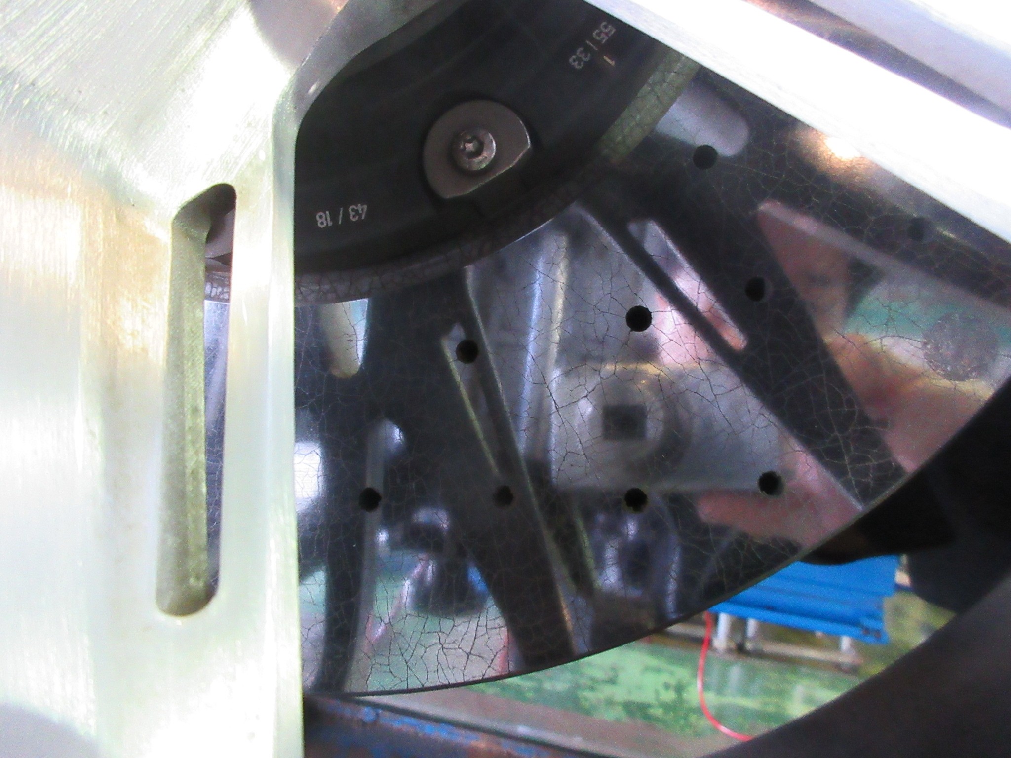 ヒビだらけに見えるかもしれませんが、カーボンディスクのドリルドローターが奢られていました。