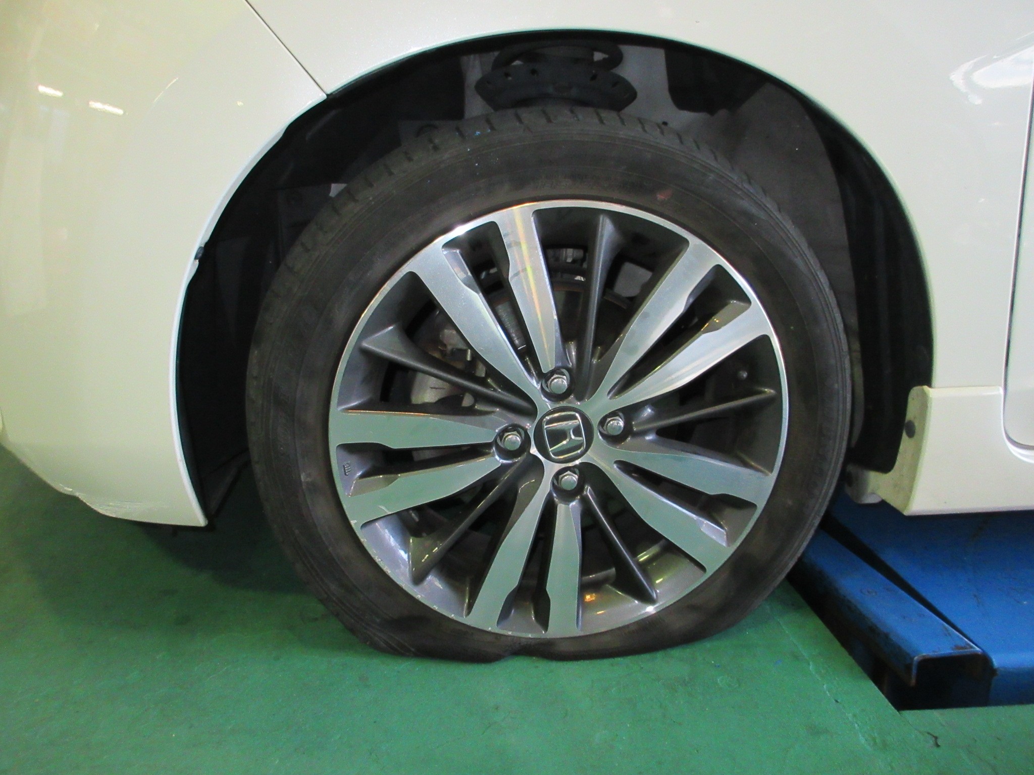 タイヤのバーストでレッカー搬送されてきたお車なので、復帰させる為にはタイヤ交換必須という状態です。