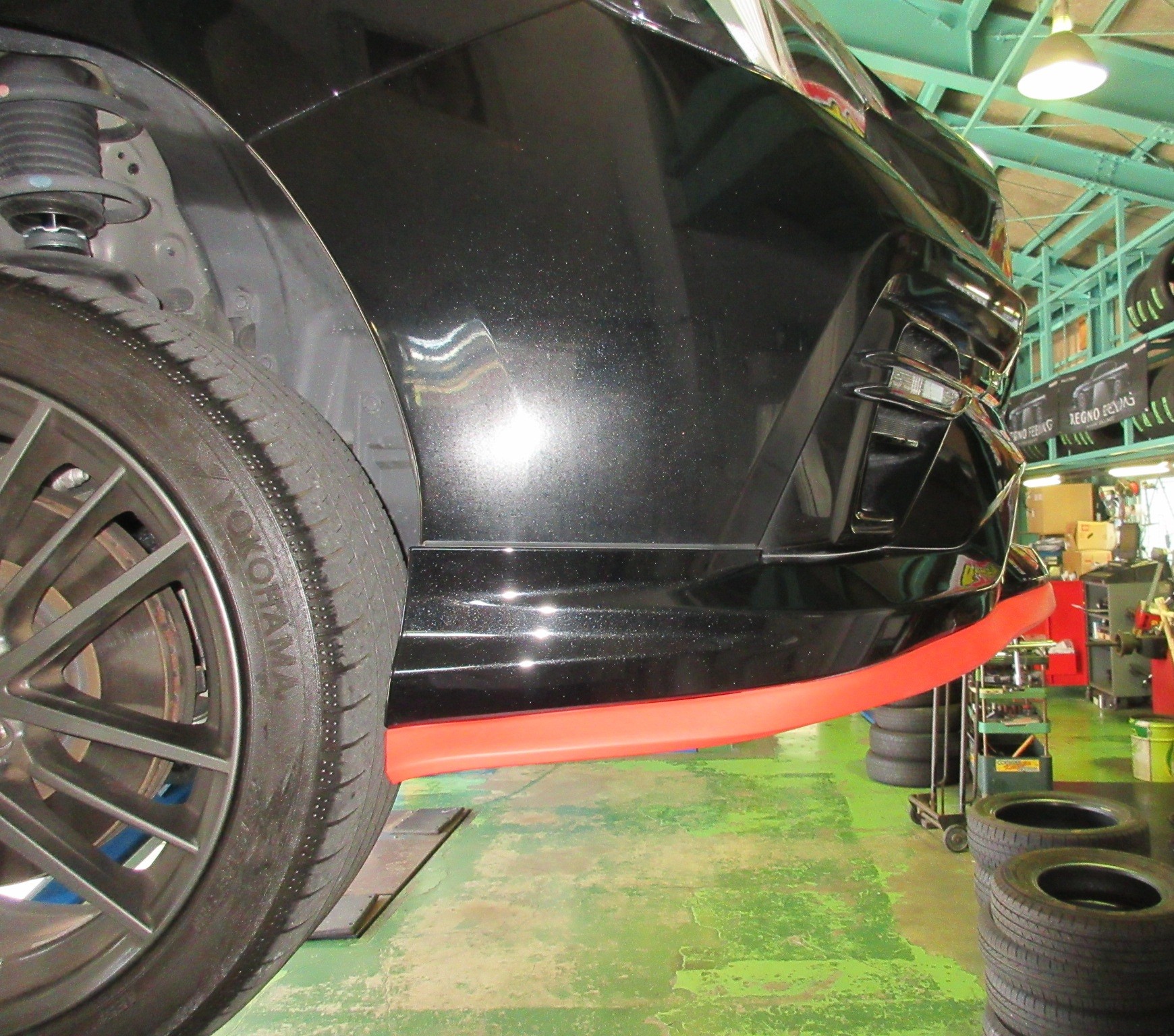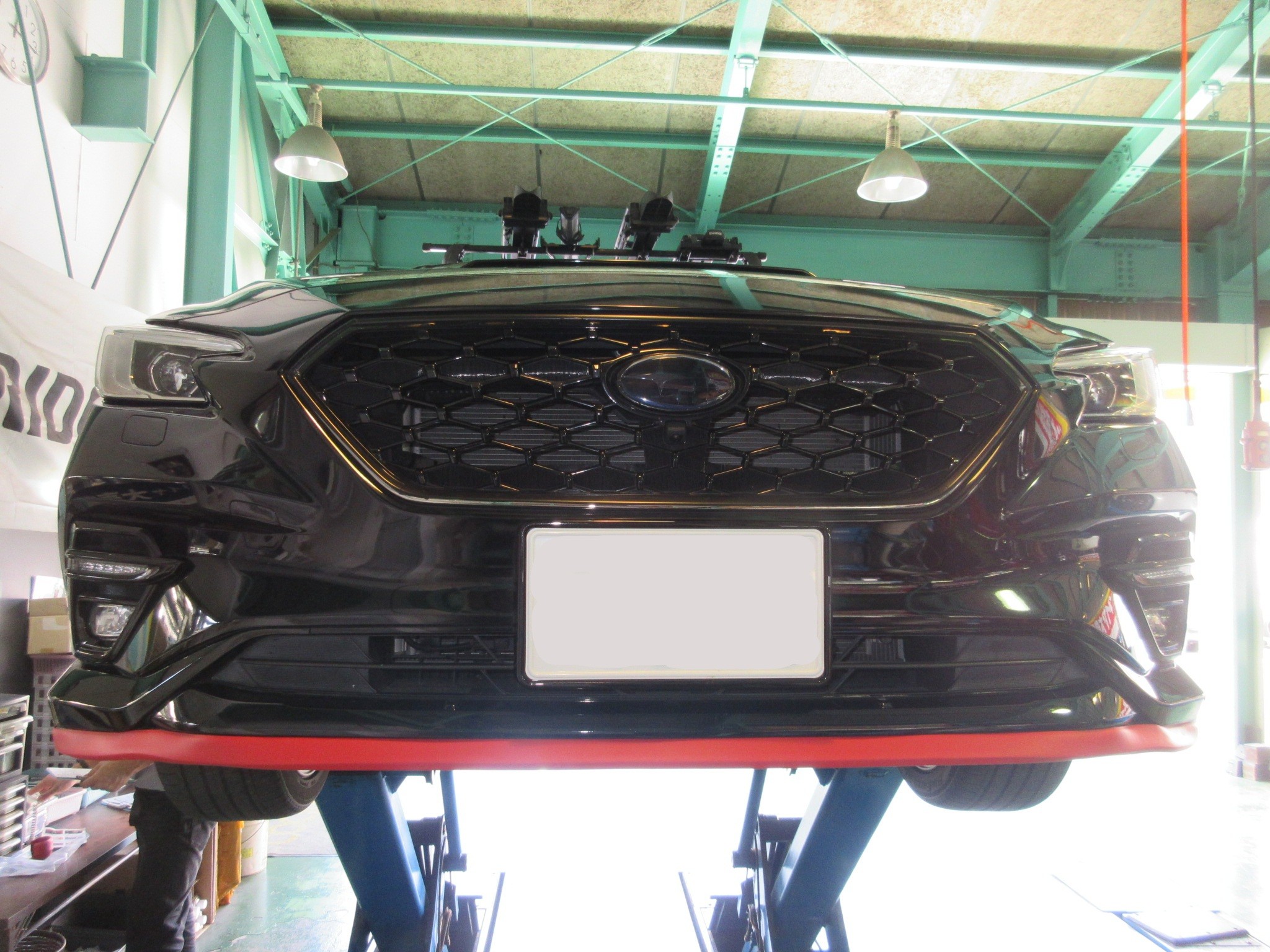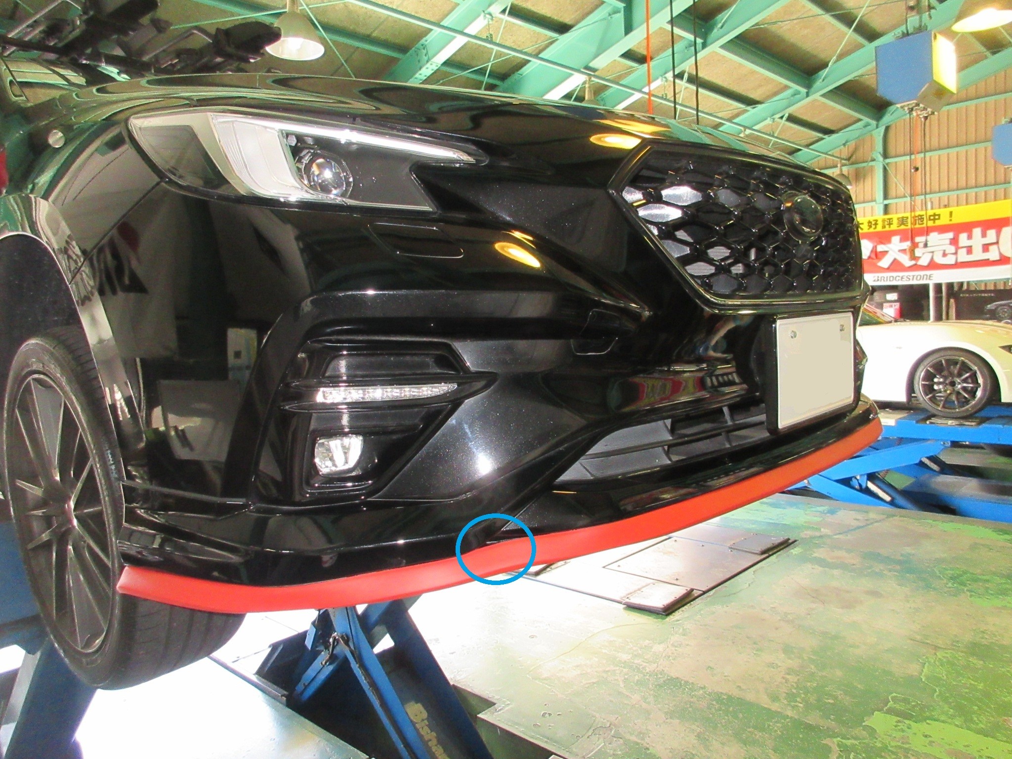VNレヴォーグのフロントバンパー下端にイージーリップを取り付けて、フロントにアクセントを加えます。