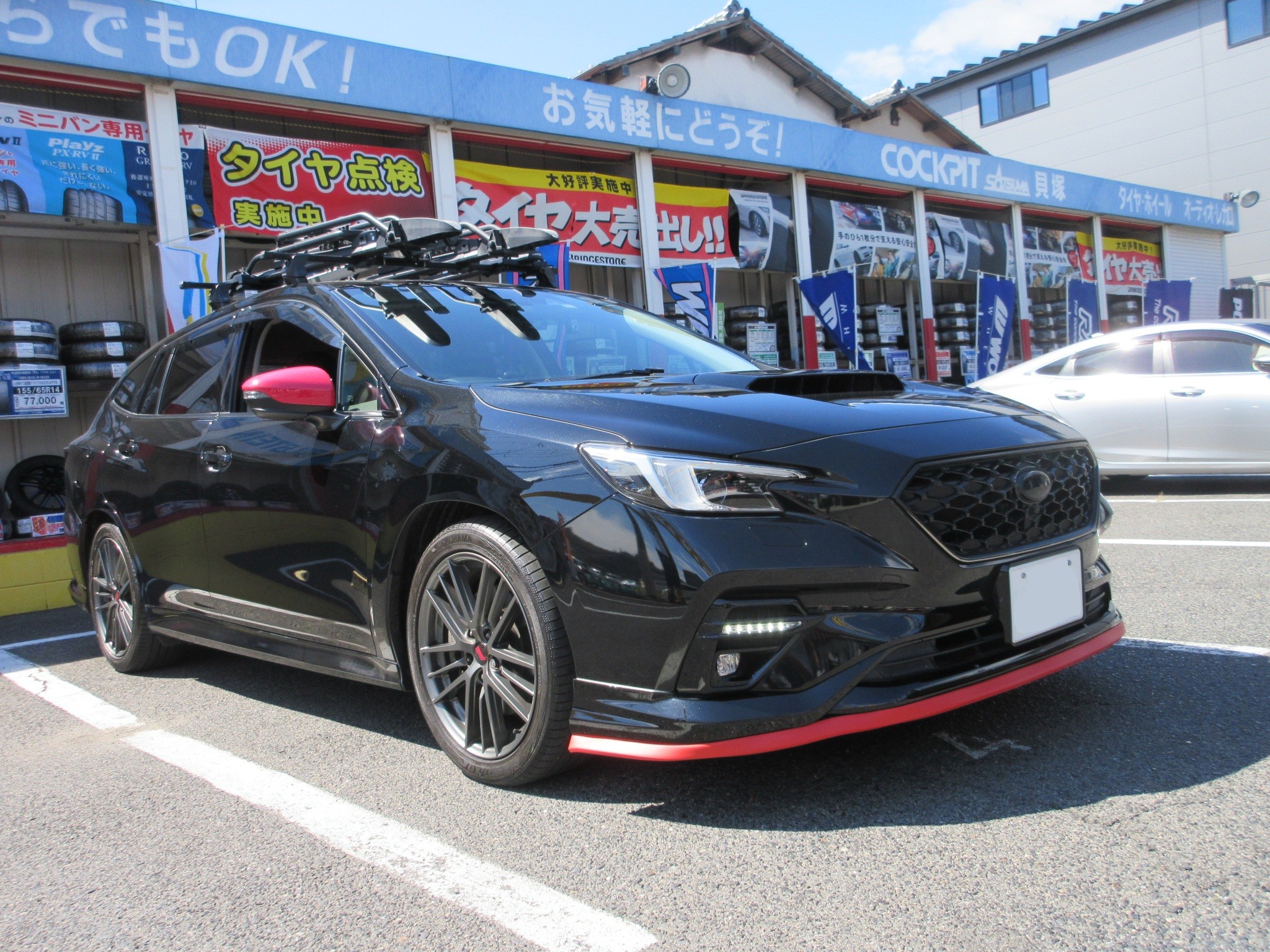 レヴォーグの車体はダークカラーなので、鮮やかな差し色で良い感じのドレスアップポイントとなりますね。