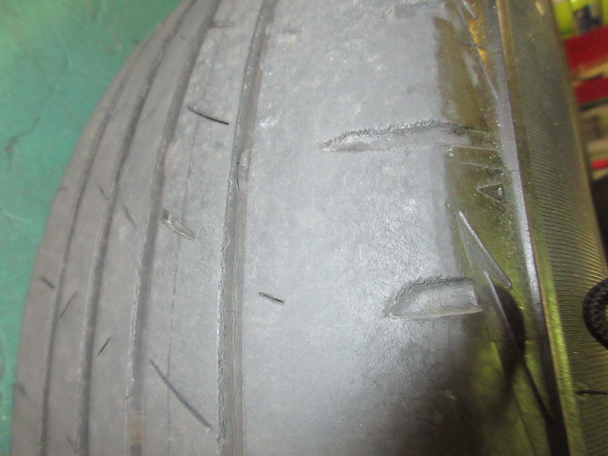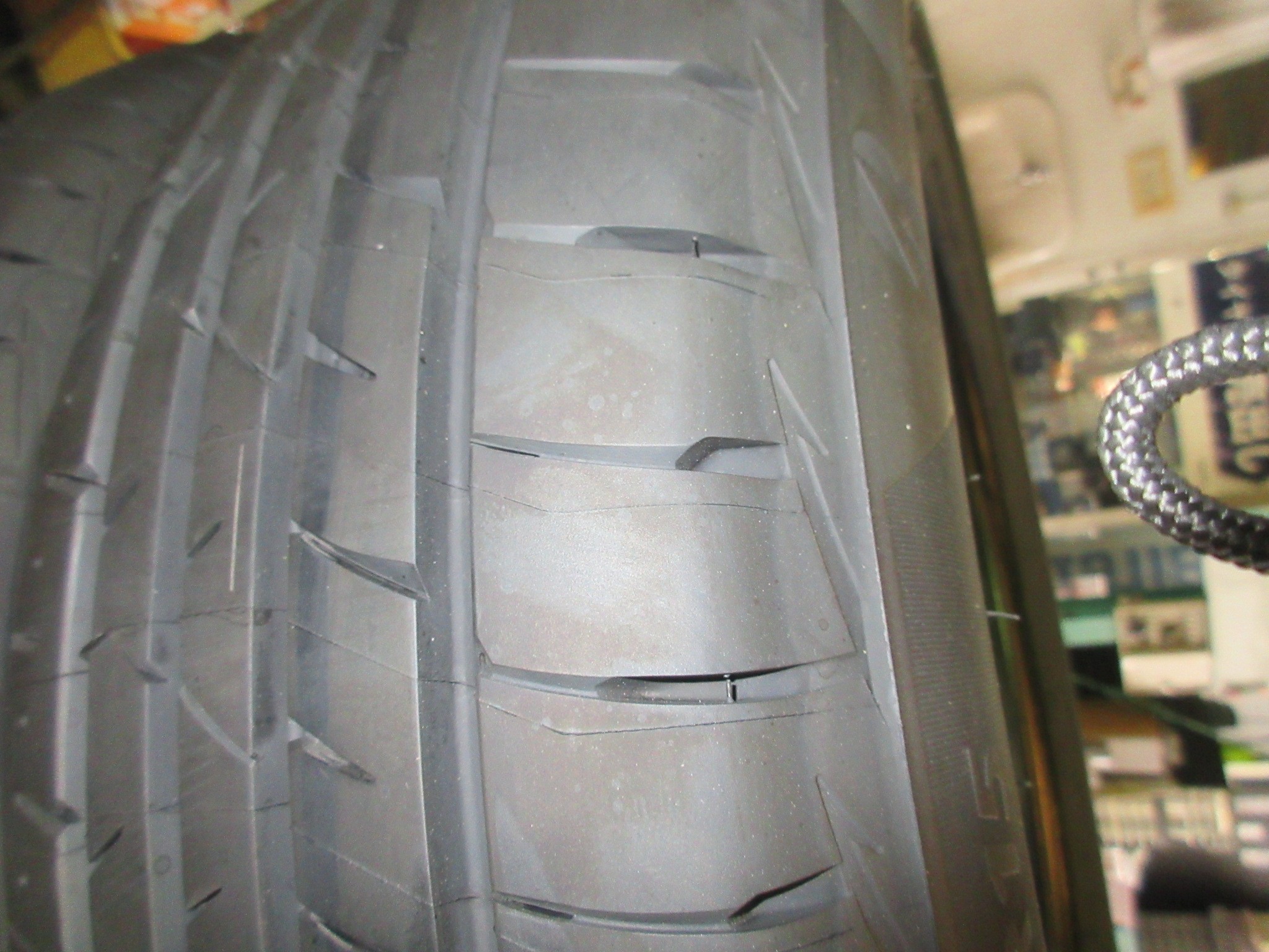 取り外したタイヤもPlayz PX-RVⅡですが、細かいヒビ割れが多くて外側の浅溝はほぼ無くなってました。