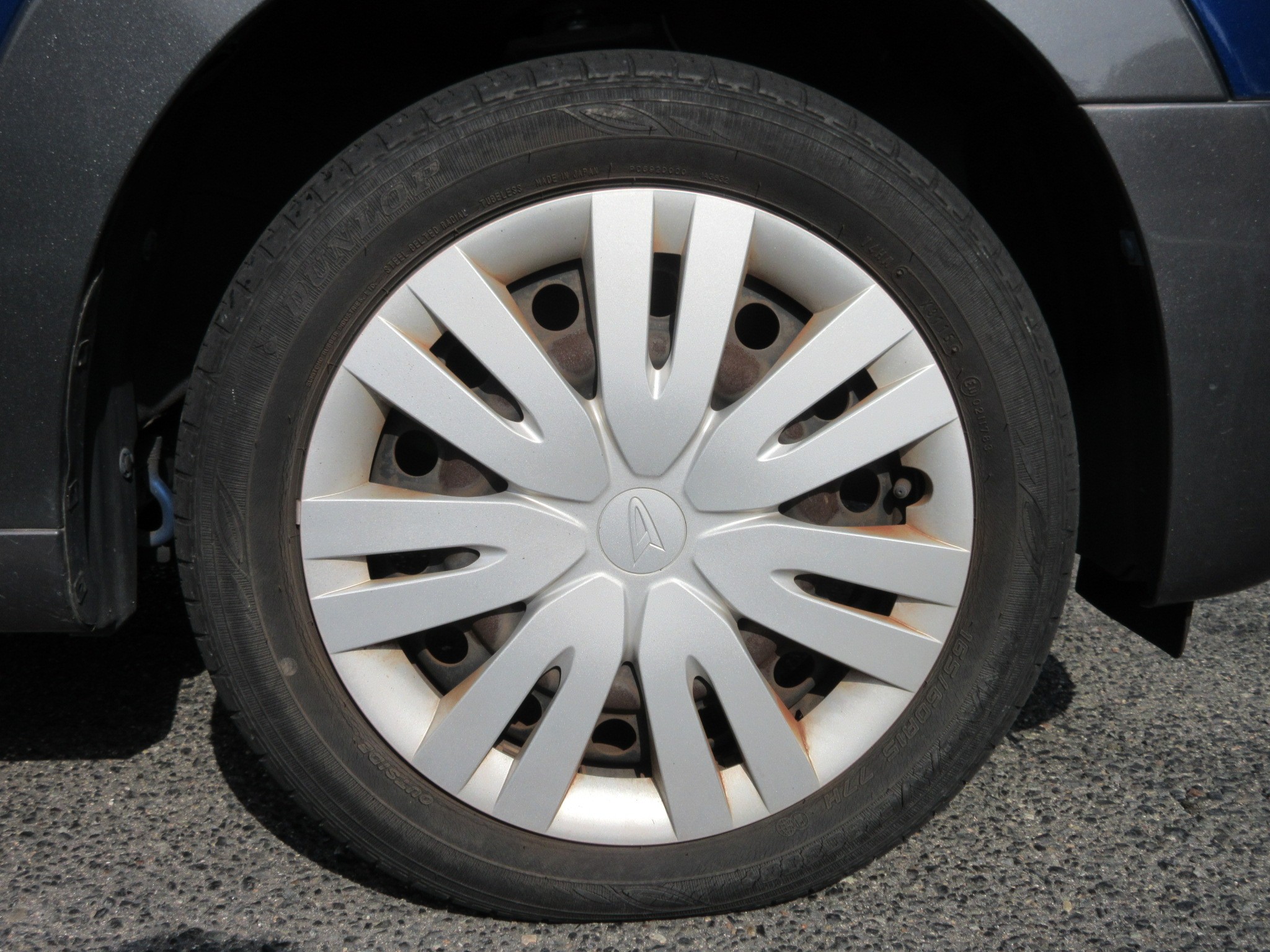 よくあるホイールカバー仕様ですが、フロントはブレーキダストがホイールカバーに焼き付いていて、見た目がちょっと悪くなってきてる感があります。