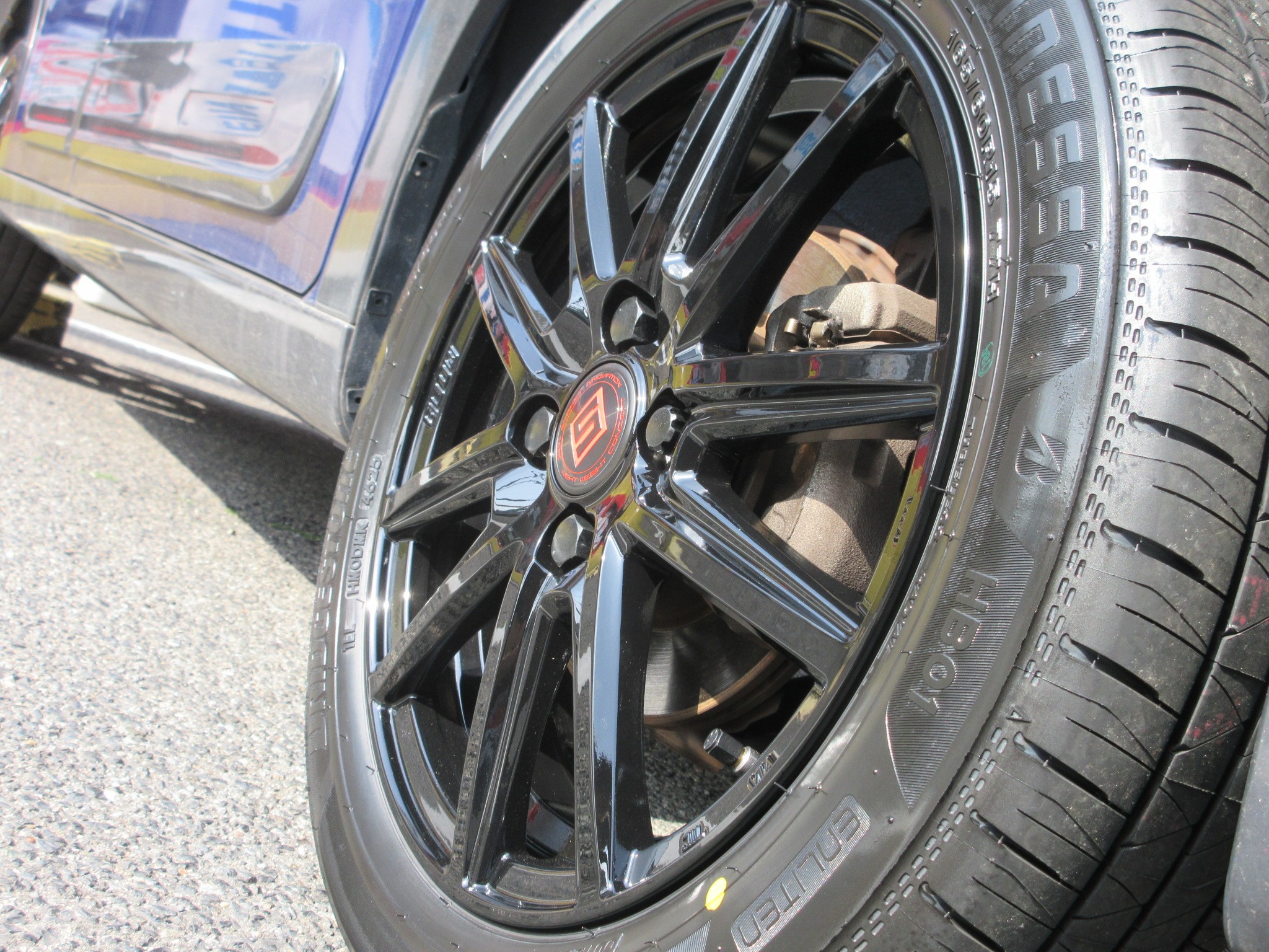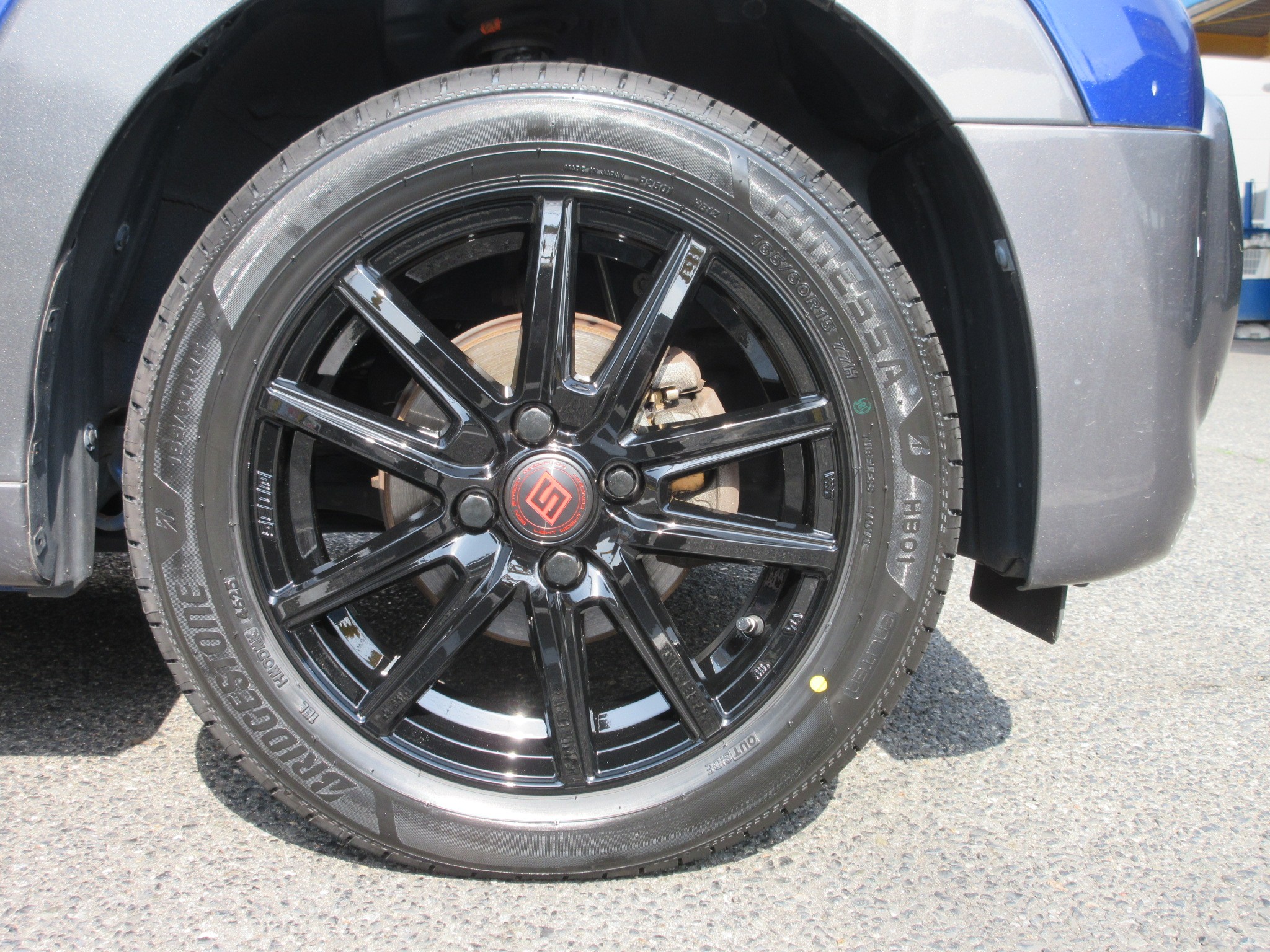 グロスブラックのスポークデザインをチョイスしましたが、バンパーやフェンダーの一部はグロス(艶あり)ガンメタなので、近似色のホイールで全体のカラーバランスが向上しました。