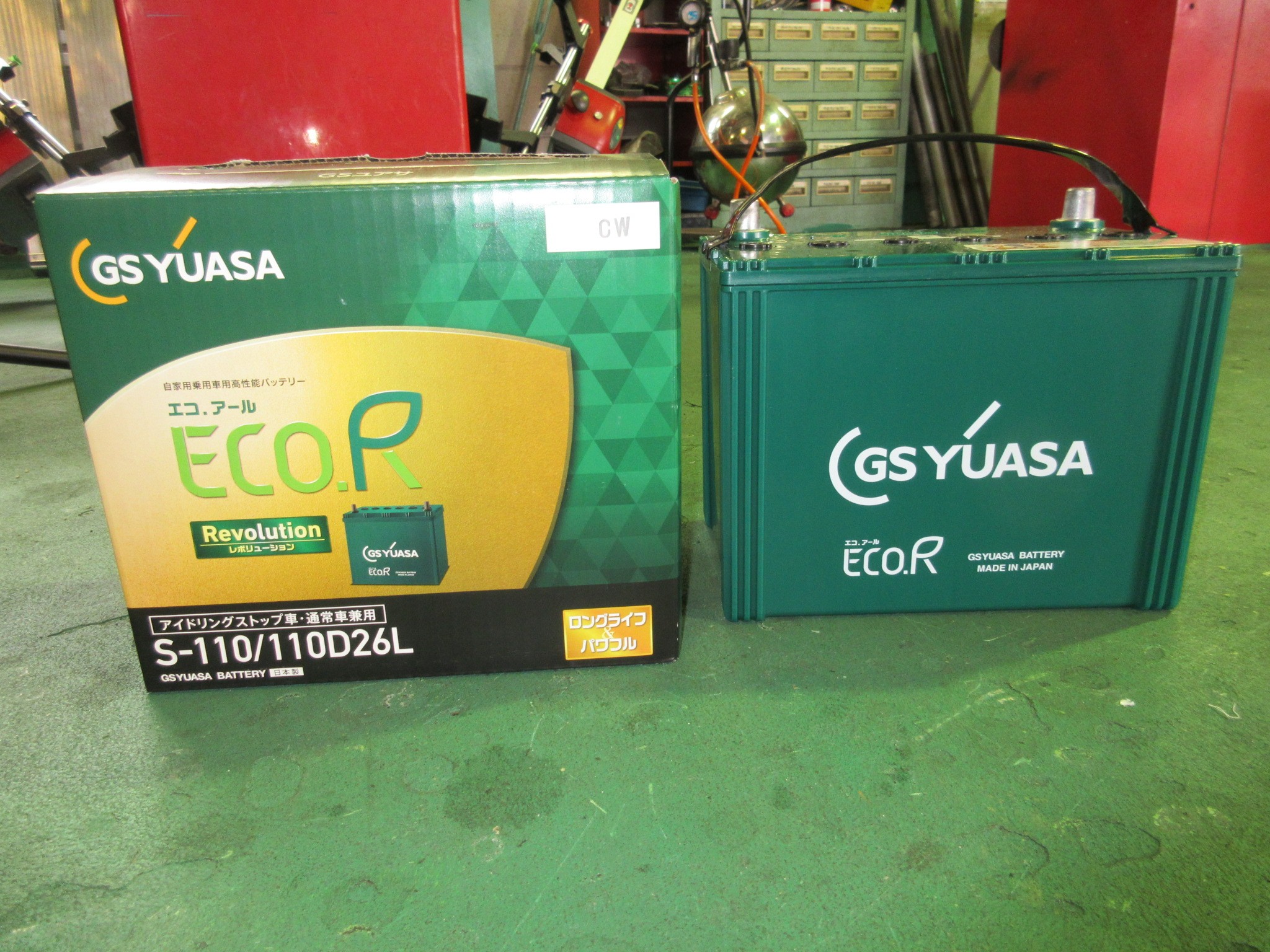 そんなバッテリーの交換に用意したのは、オーナー様の強い希望で『GS YUASA ECO.R Revolution』です。