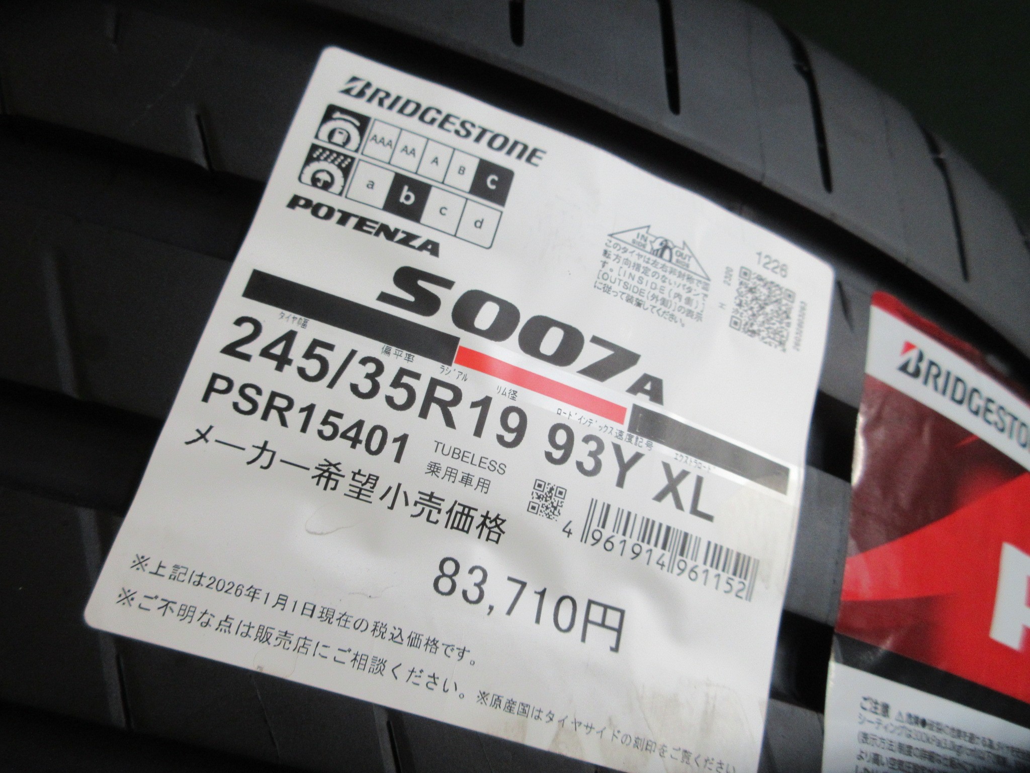外したタイヤもPOTENZA S007Aでした。