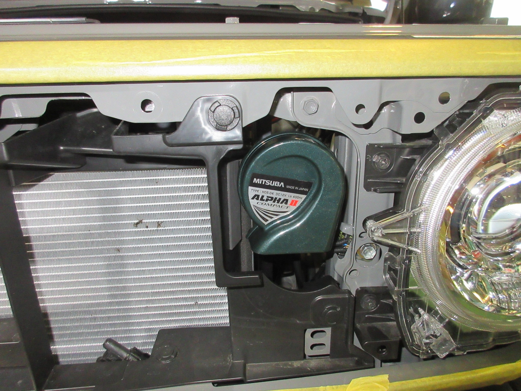 そして取り付け後にちゃんと鳴るかどうかの確認を行い、問題無かったのでフロントグリルを組み付けて作業終了。