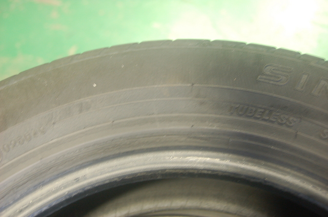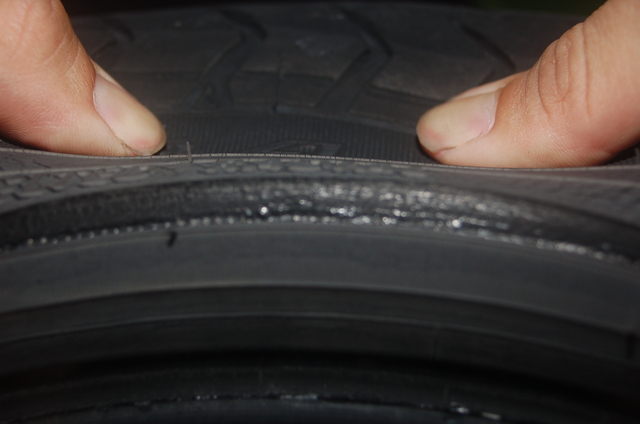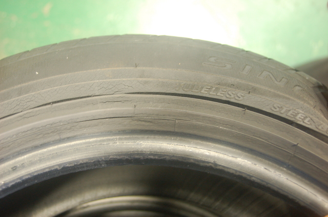 真ん中はタイヤを曲げると亀裂がみえます。