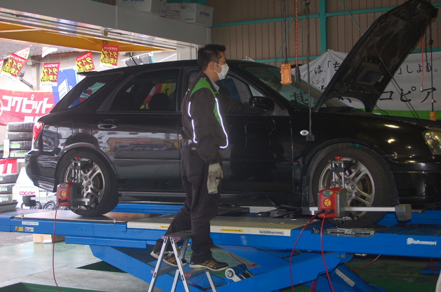 今日は以前テインの車高調サスペンションを装着したインプレッサのアライメント調整です。