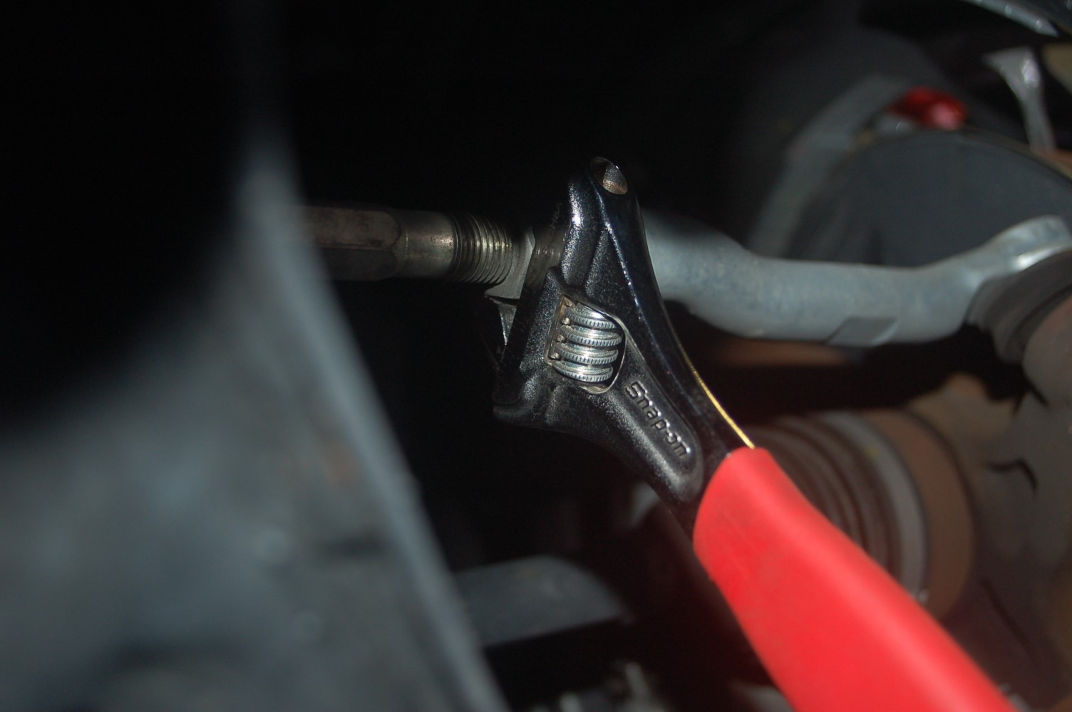暗くて分かり辛いですが、ここのネジを締めたり緩めたりして調整します。