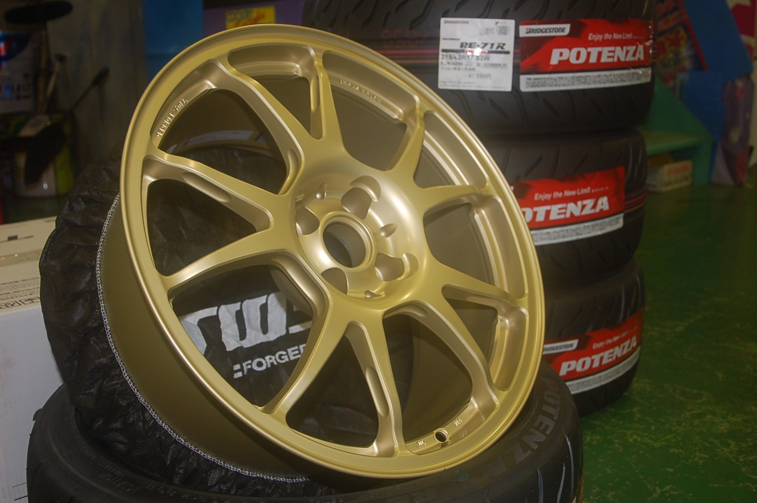 お客様も最近走行会に参加し始めたとの事で、軽量鍛造ホイールにハイグリップタイヤをオススメ。