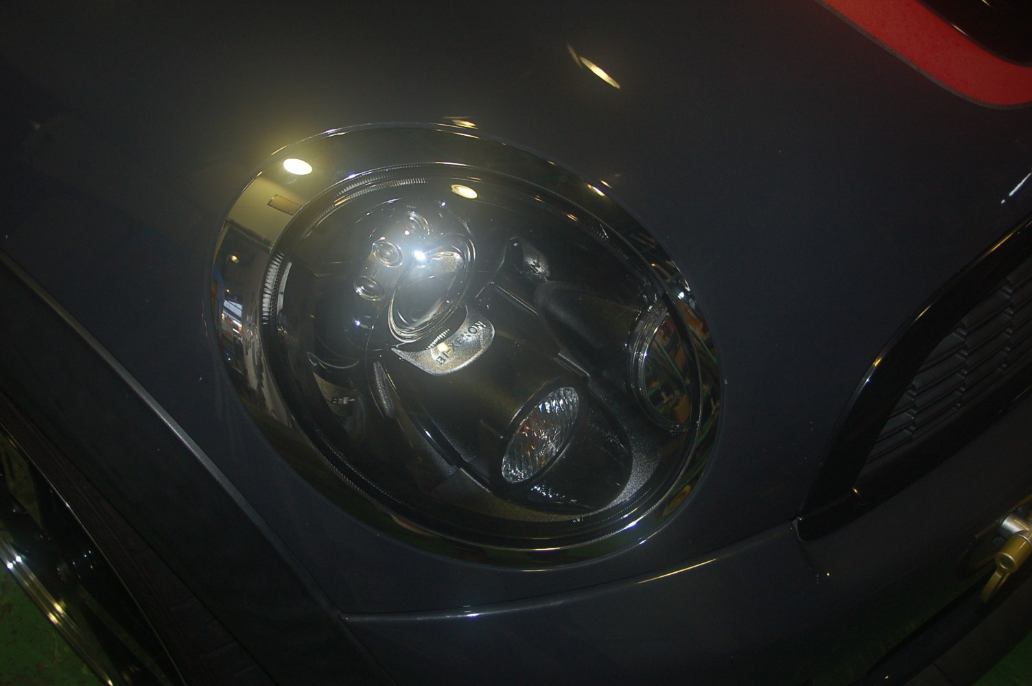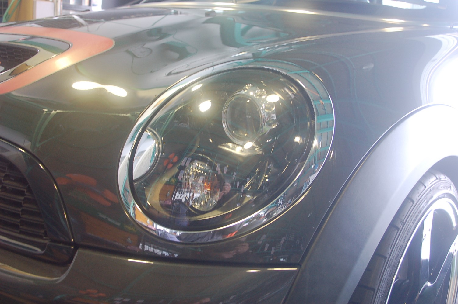 正解はミニのヘッドライト周りのメッキリングです。