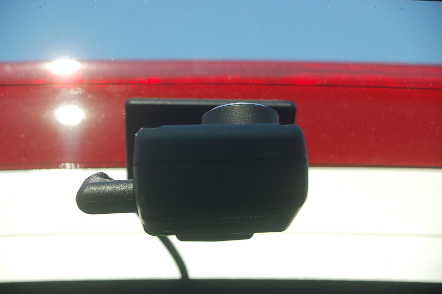 リヤカメラ取り付け。純正リヤスポイラーが付いていたので、少し下目に取り付けさせて頂きました。