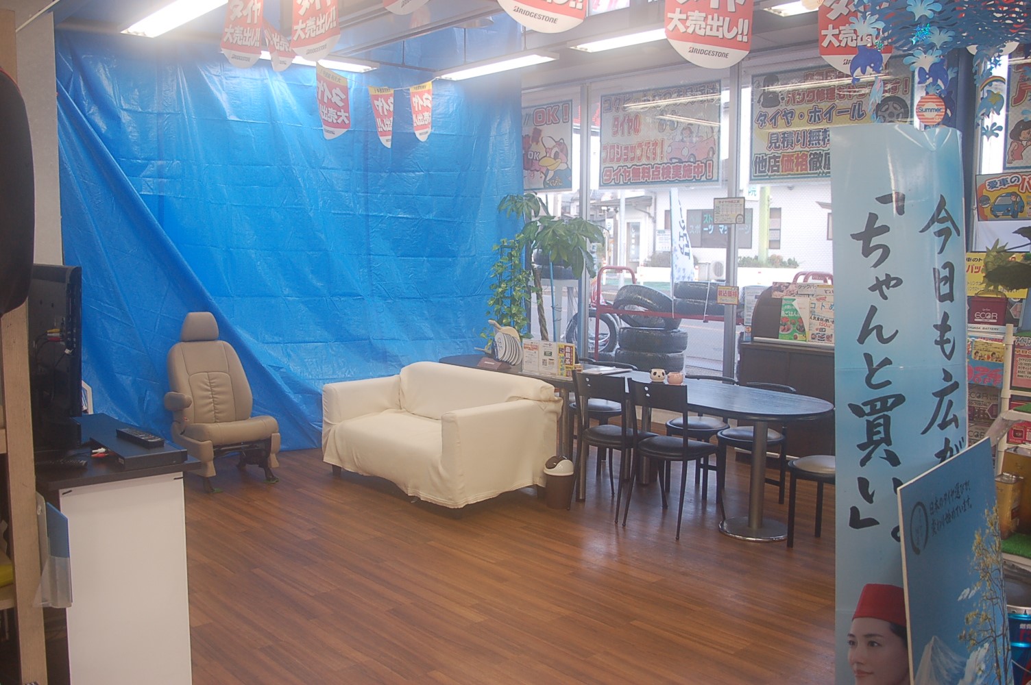 店内に不自然なブルーシートが掛かっていたり・・・