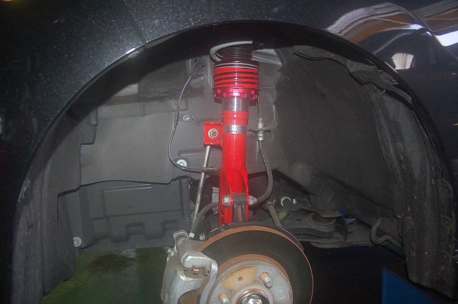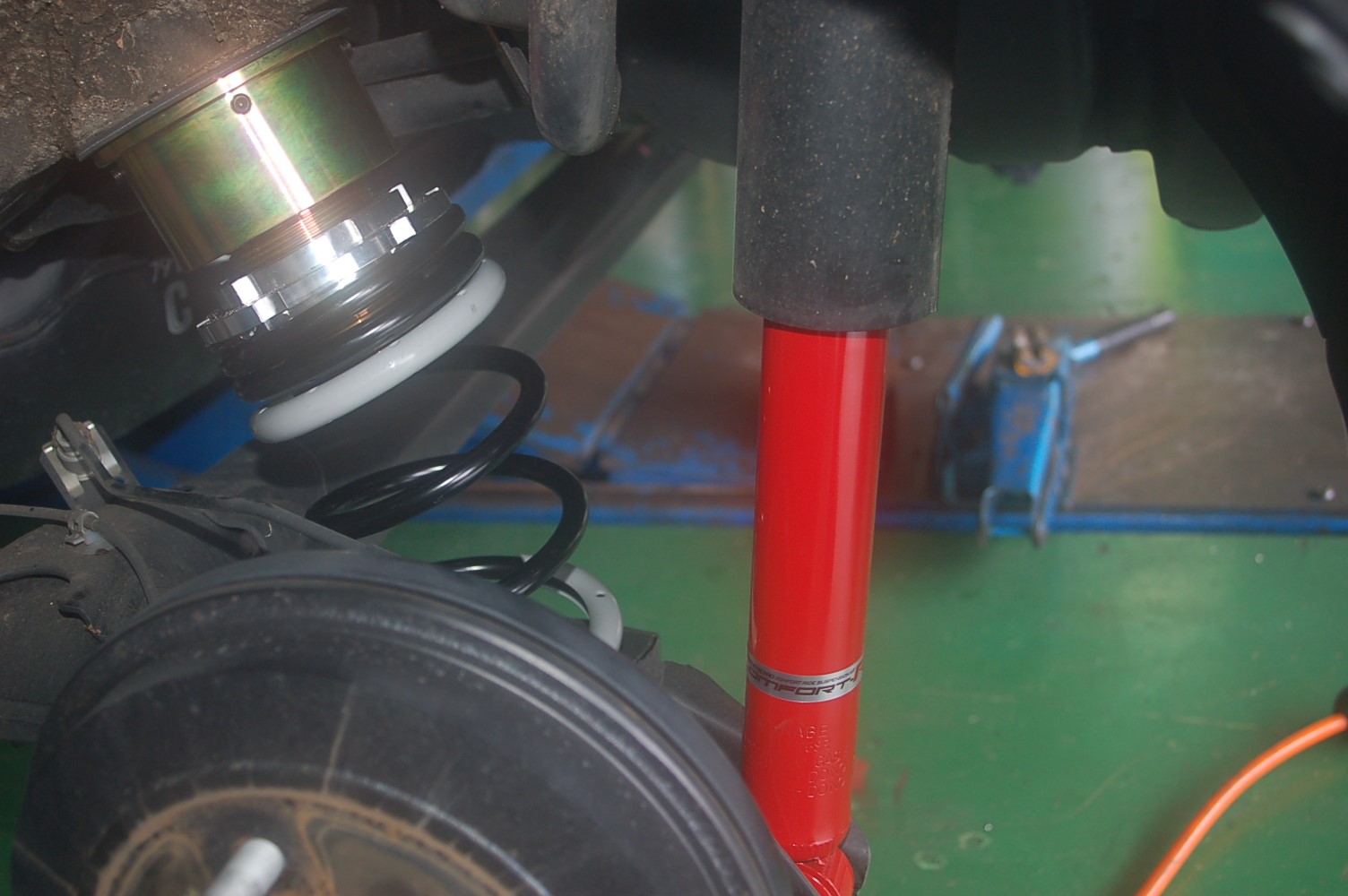 純正のサスペンションキットから、TANABEのCR車高調キットに交換です。