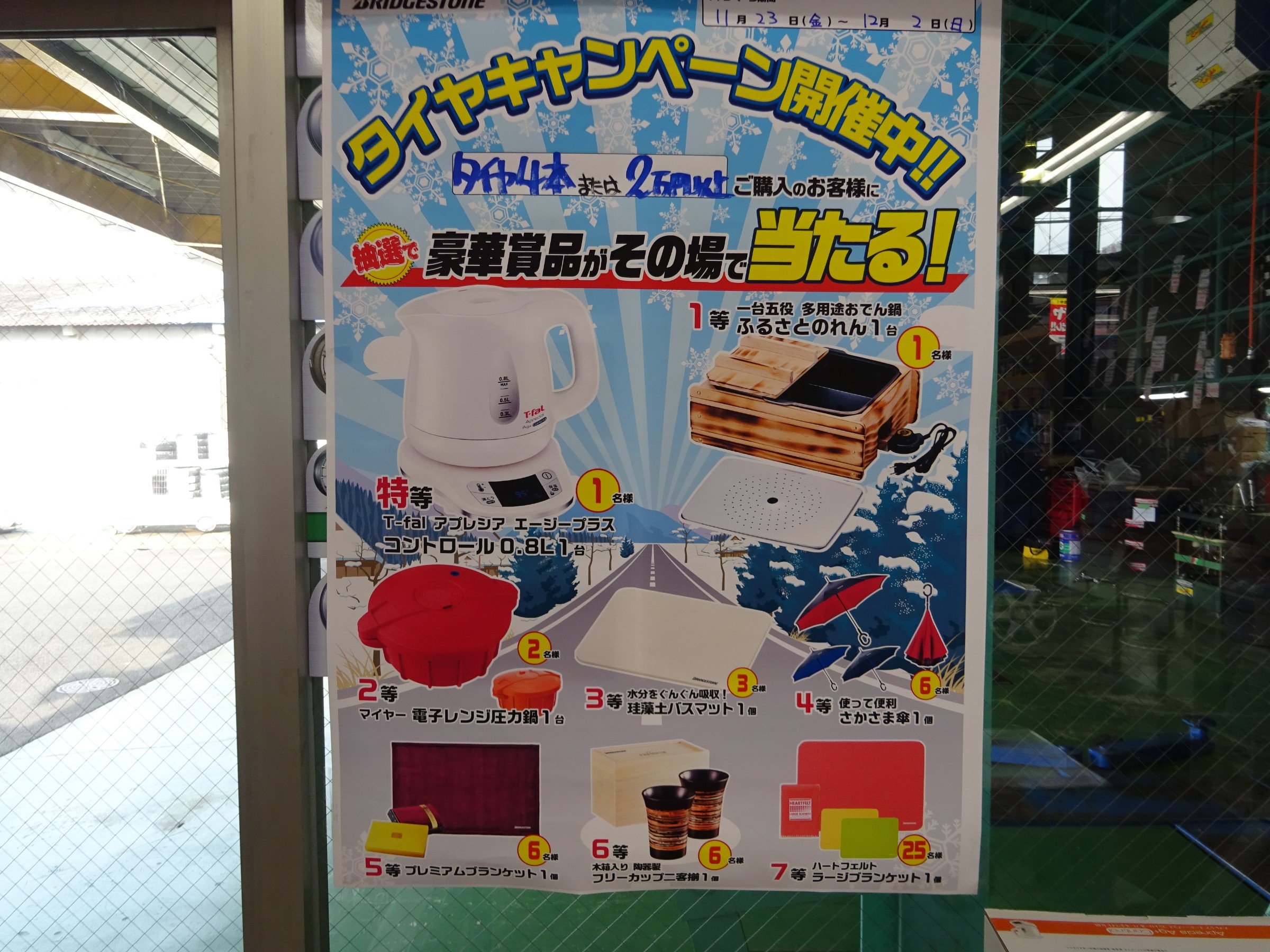 豪華景品もまだ残っていますので、是非この機会にタイヤを交換をして、くじ引きで良いものをゲットしましょう!