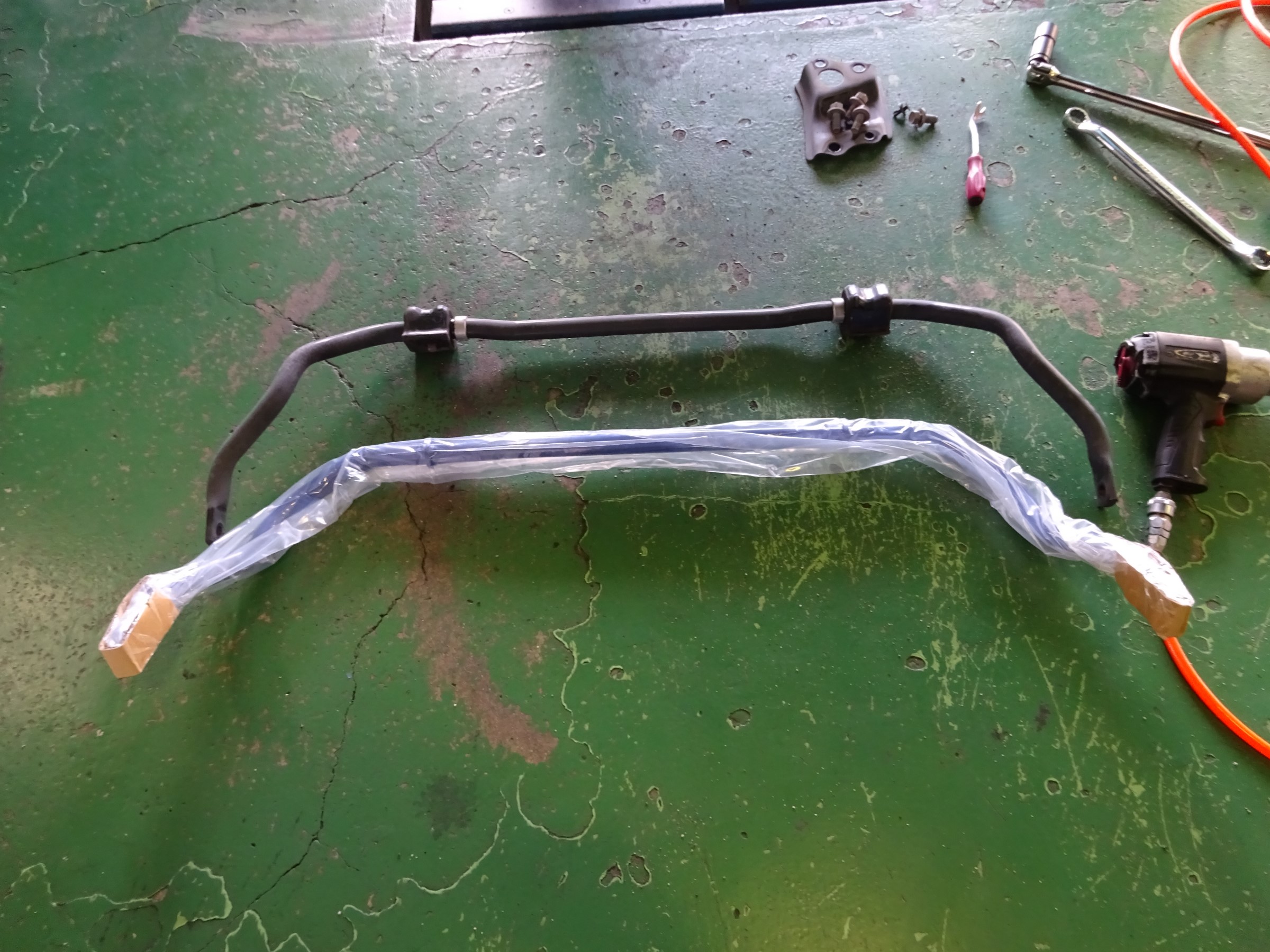 走行中のふらつきが気になるという事で、ブレースバー等検討していた様ですが、手始めにスタビライザーを強化品に交換する事になりました。