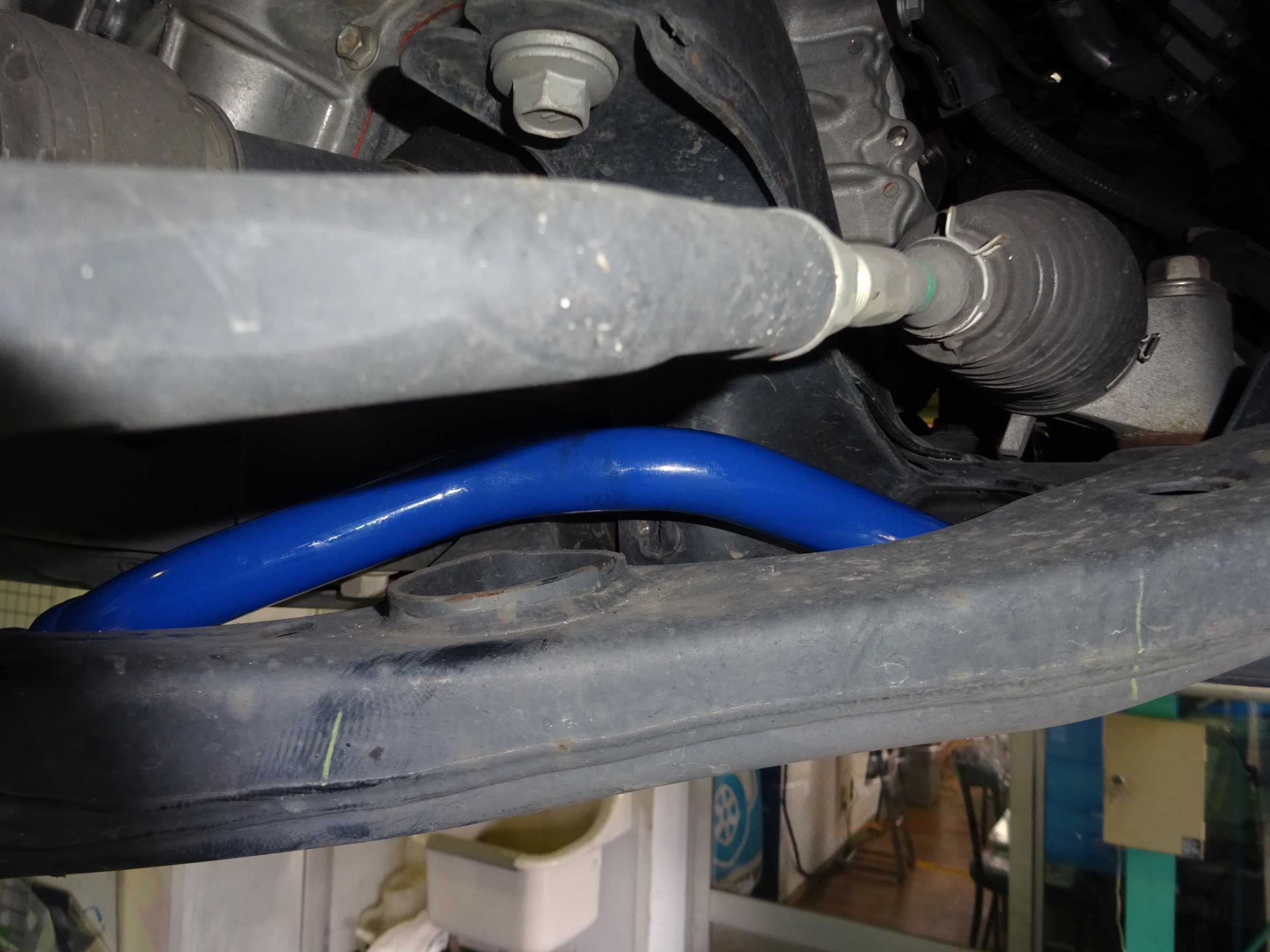 ビニールが被ってるので分かり辛いですが、青いスタビライザーに交換します。