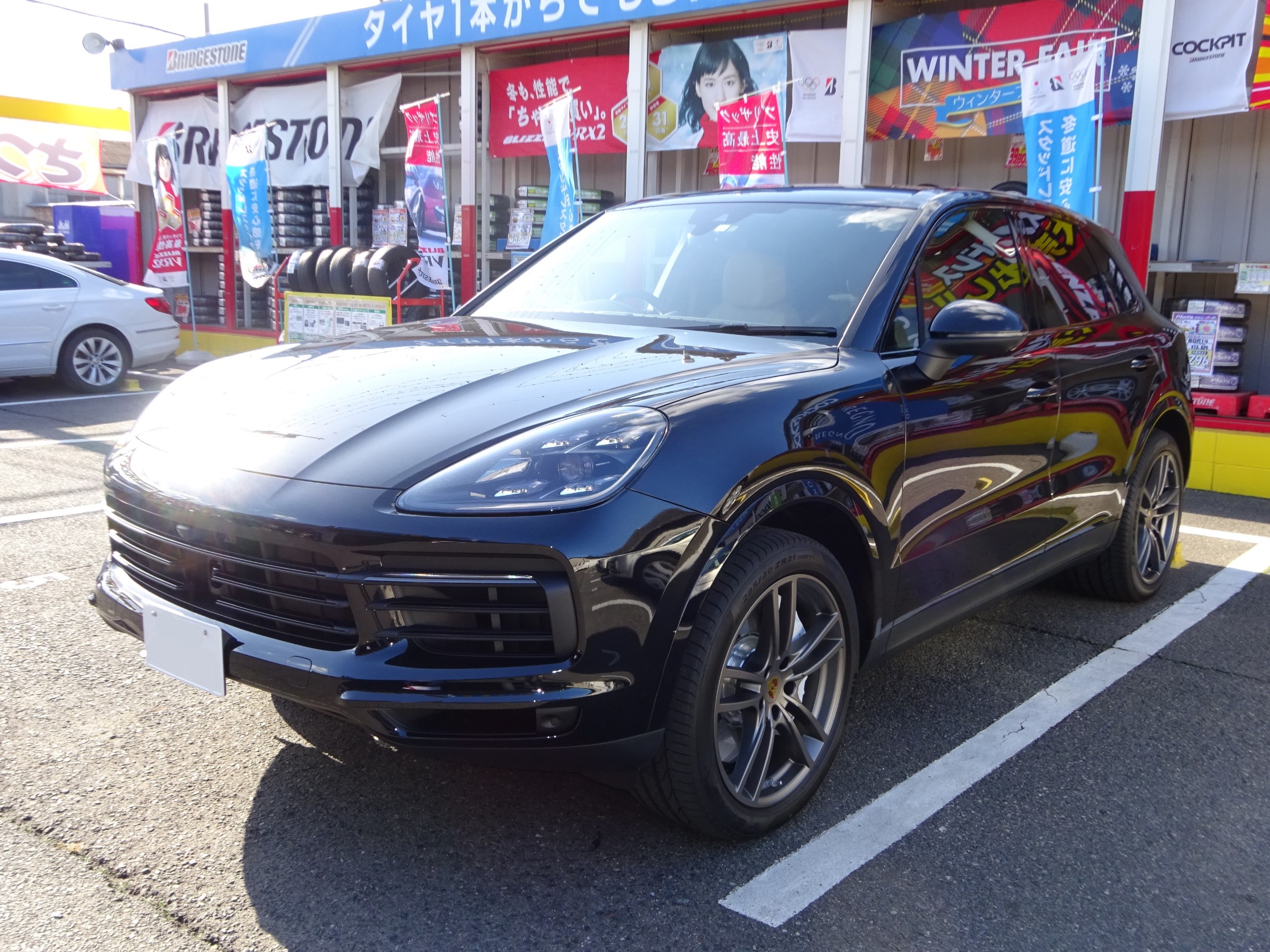 さて本日はこちらのカイエンの作業ではなく、別の車のタイヤがパンクしたとの事でカイエンに乗せてお持ちいただきました。