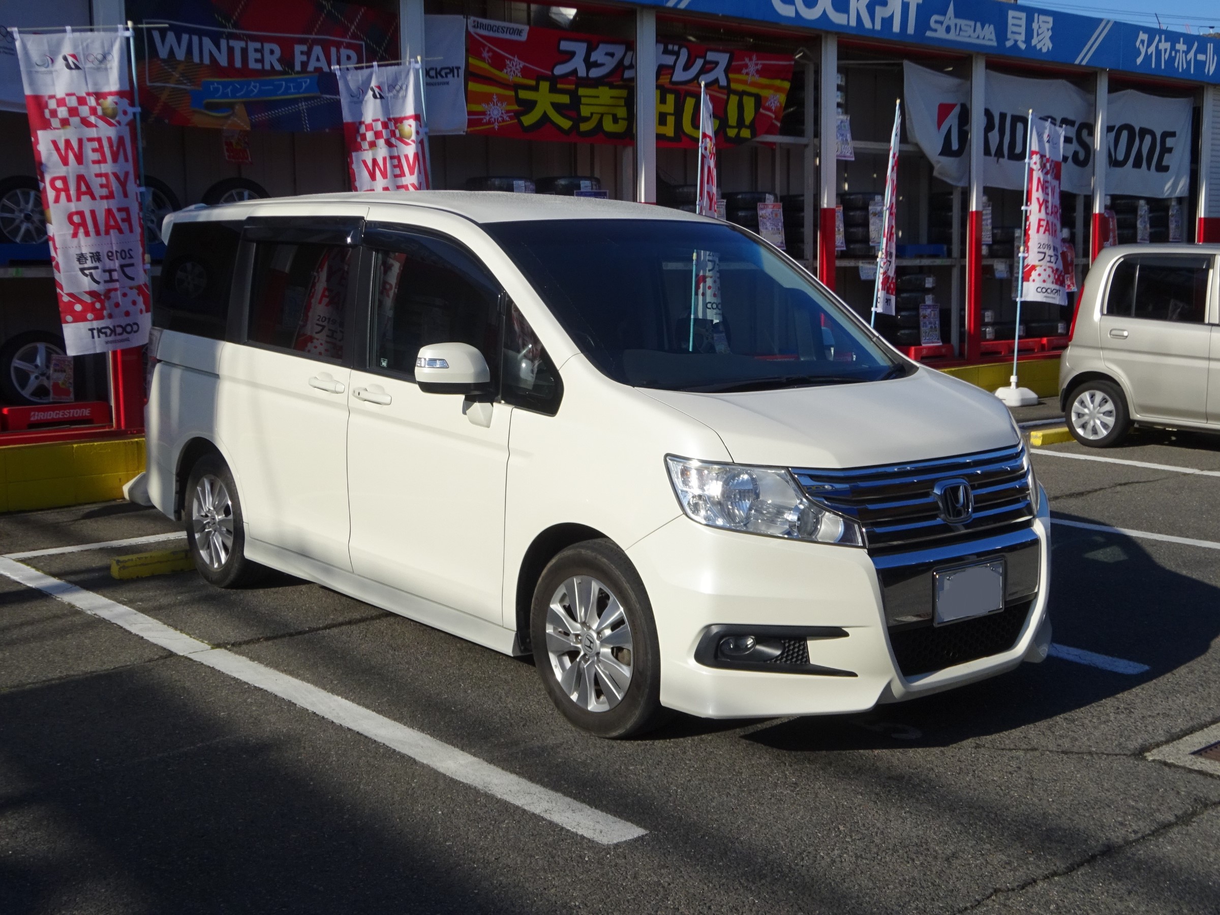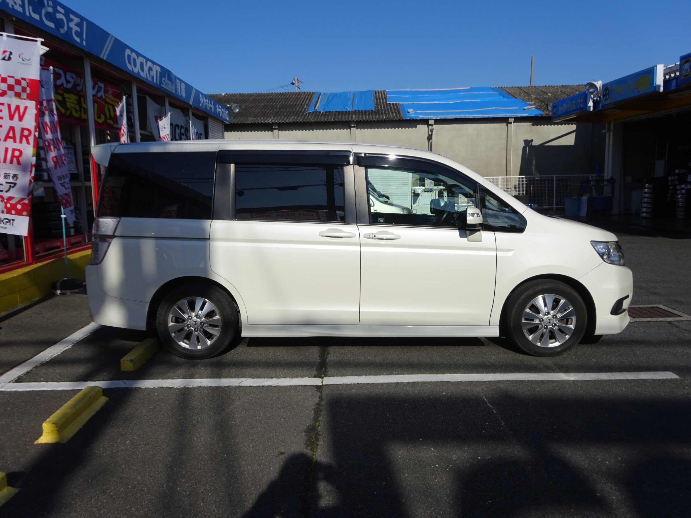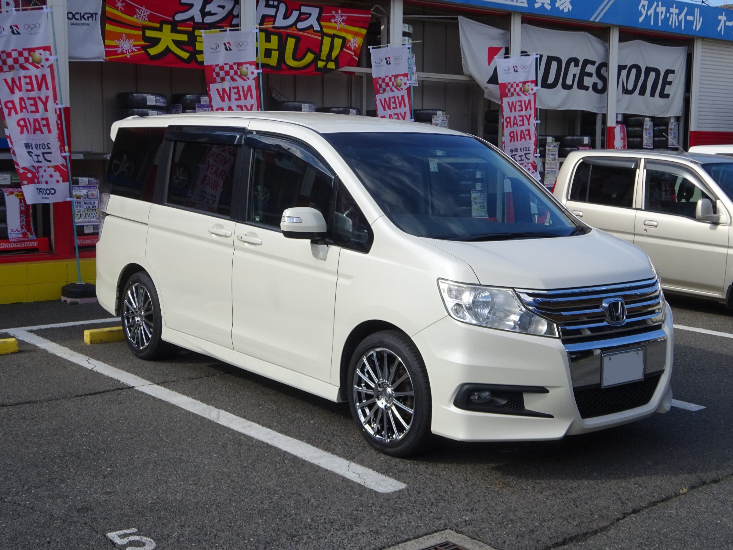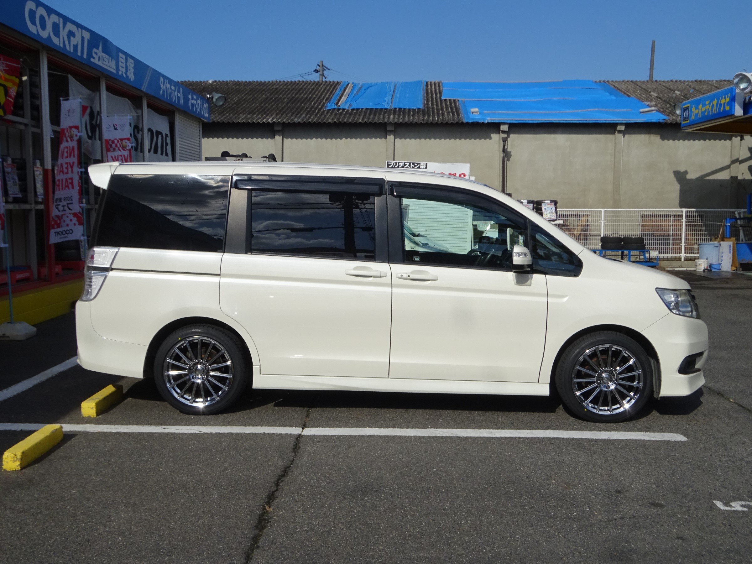 こちらのステップワゴンですが、タイヤが交換時期に来ていたので話をしていると、インチアップでご成約頂きました。