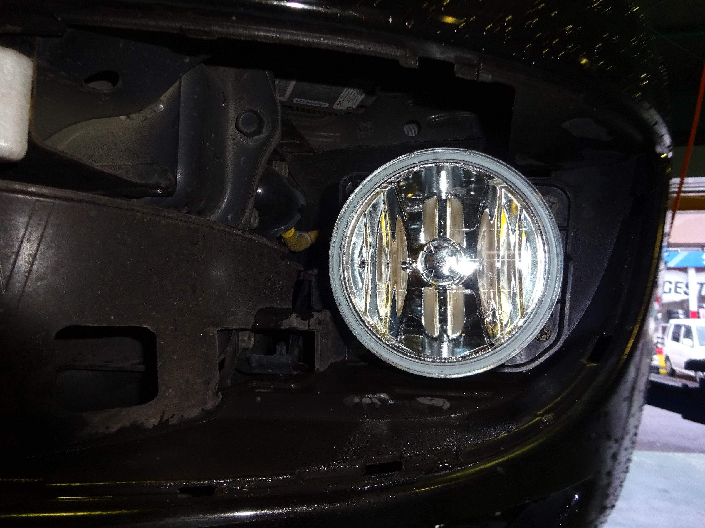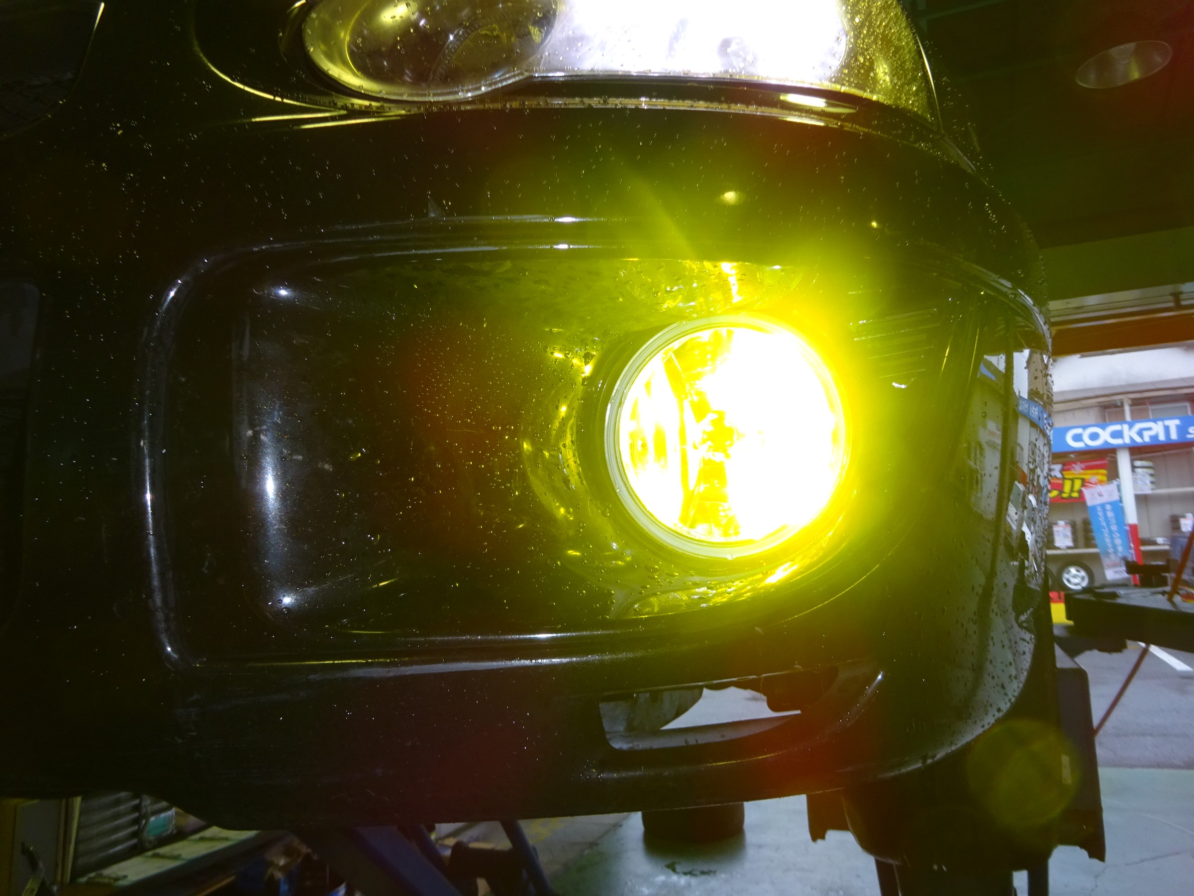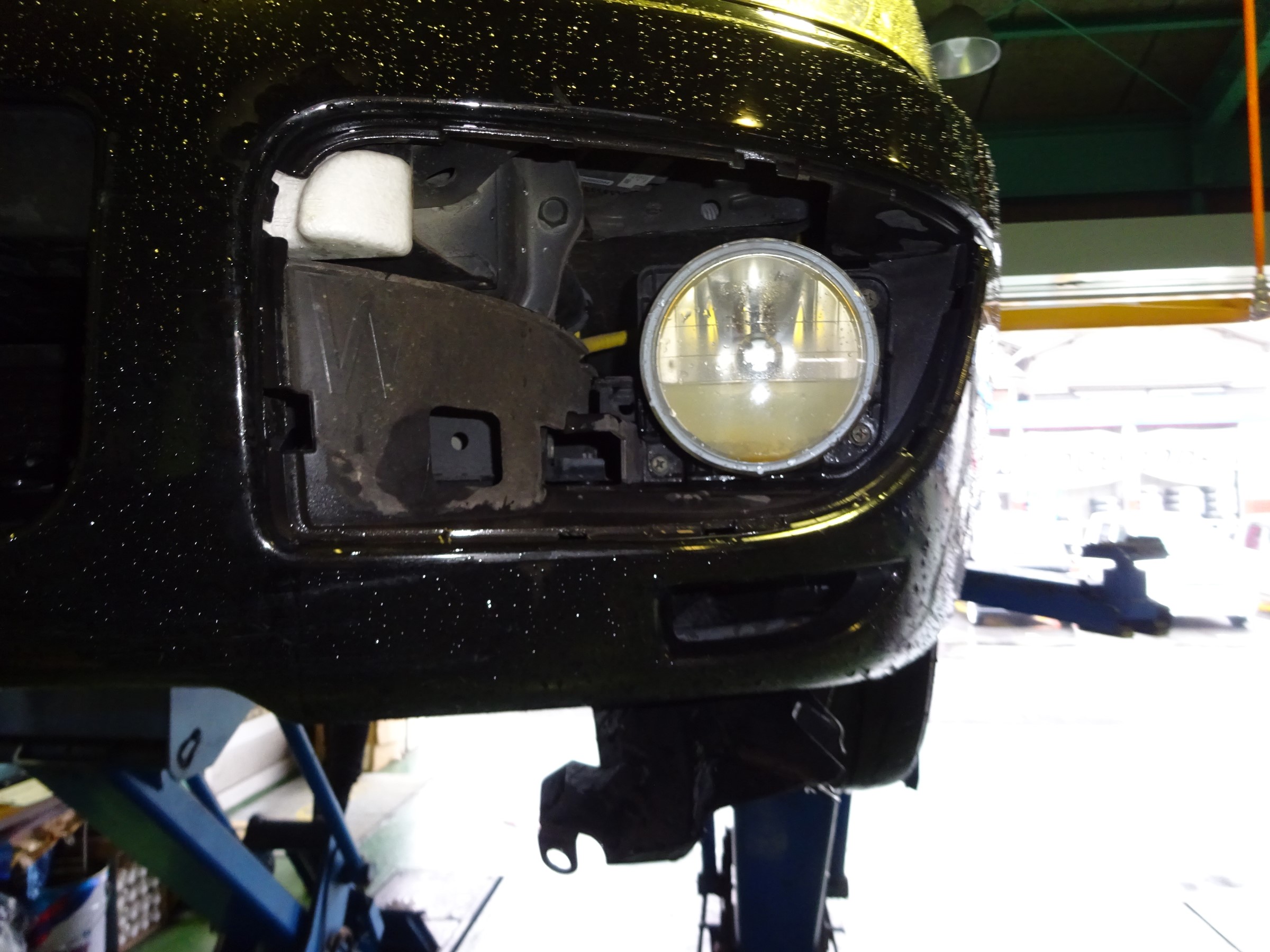 この車はバンパー前側からの作業になるので、まずはレンズ周りのカバーを外します。