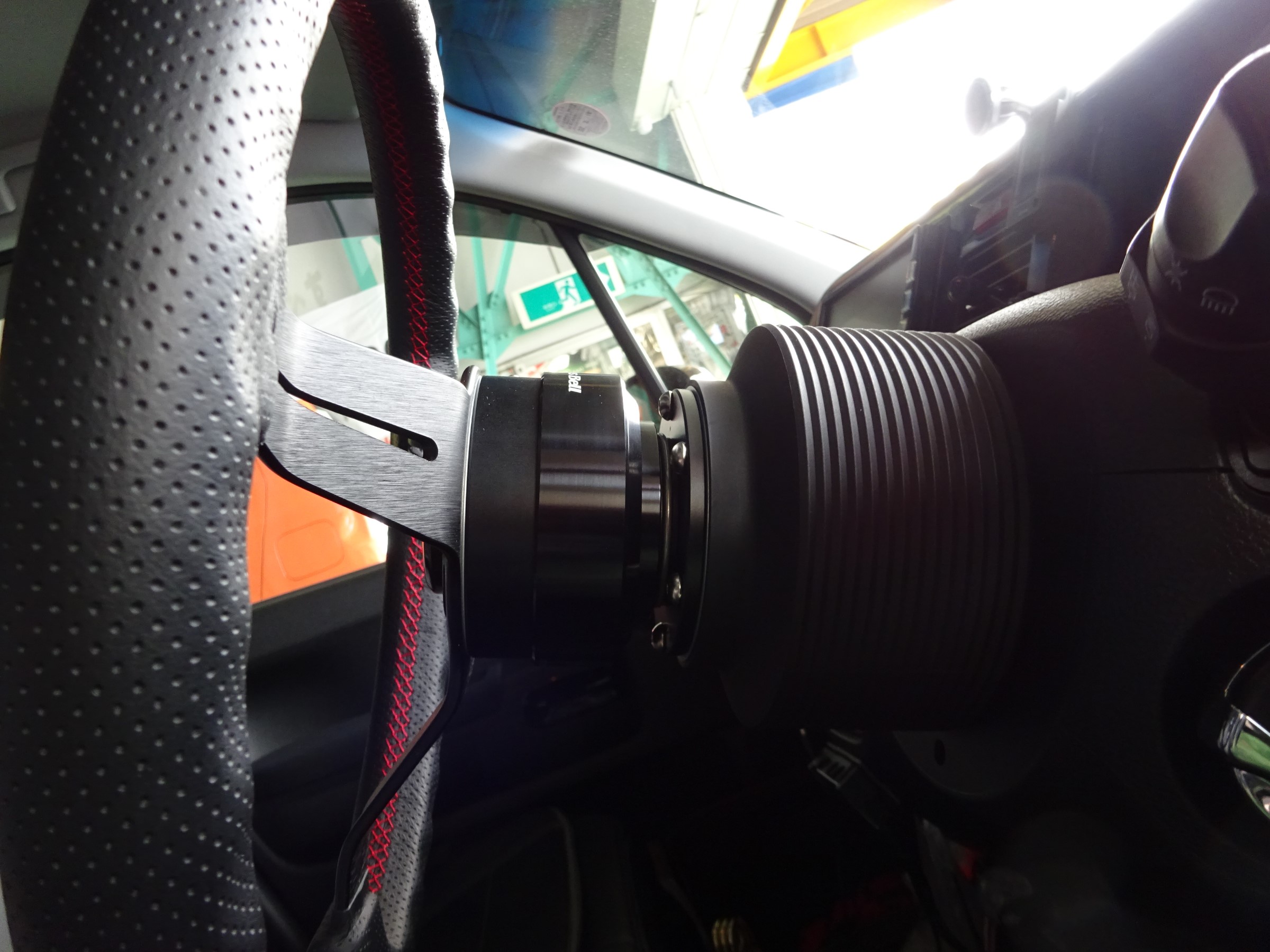 延長目的での導入ですが、ステアリング脱着も可能なので乗り降りも楽々ですww(実はこのお車RECAROフルバケットシートが付いてます)