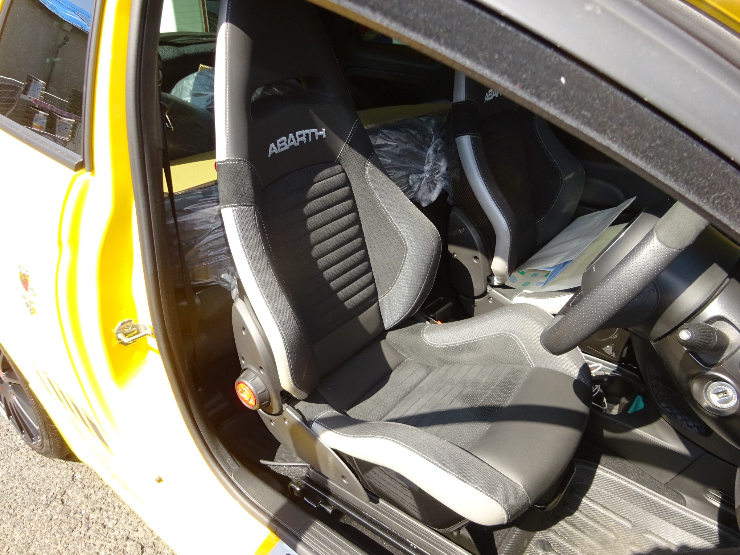 ドアを開けるとメーター内にアバルトの文字が・・・痺れる演出です。。。