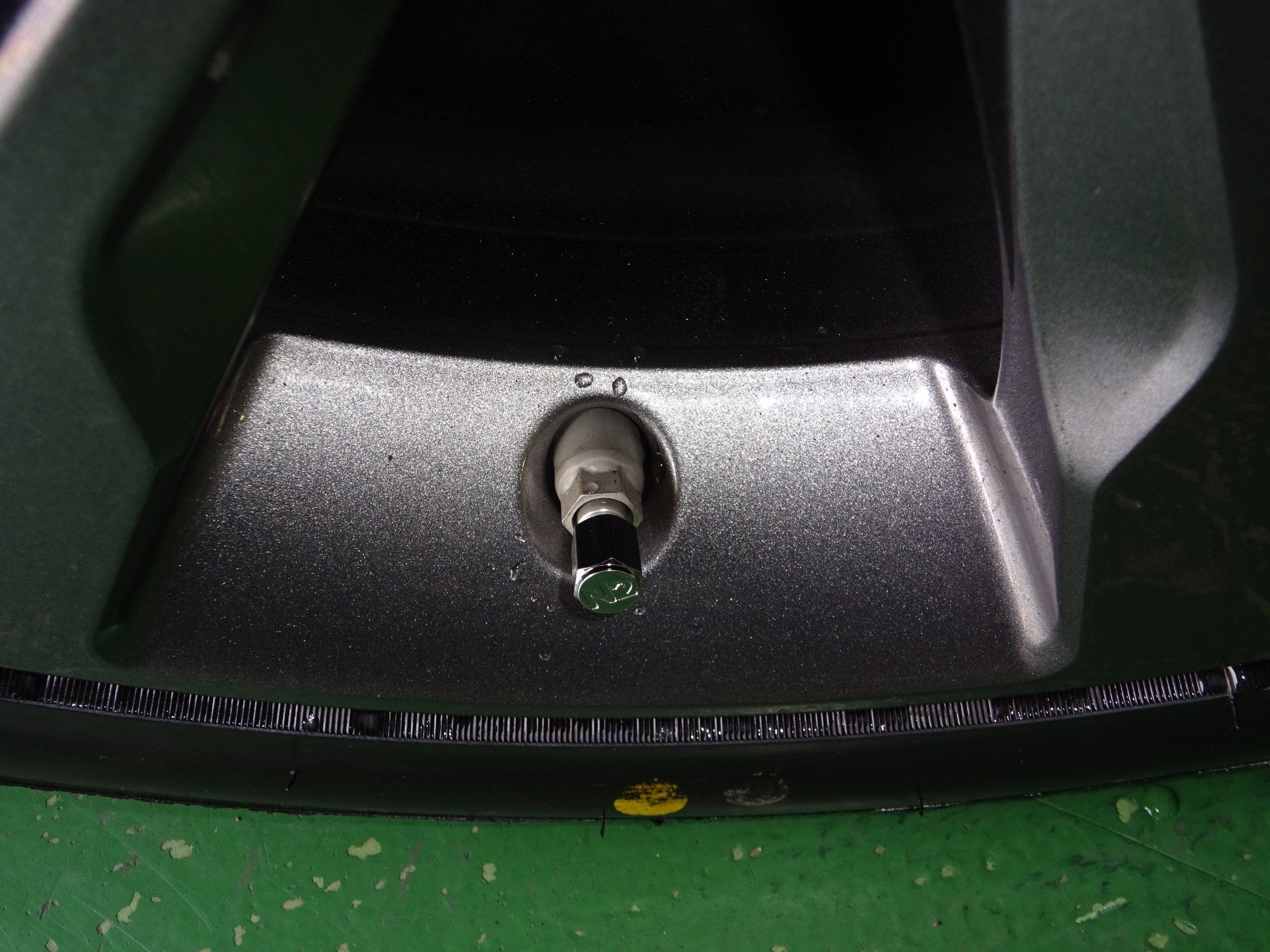 各車輪、ホイールに付いている空気の入れ口を、空気圧センサーが一体になったものに交換します。
