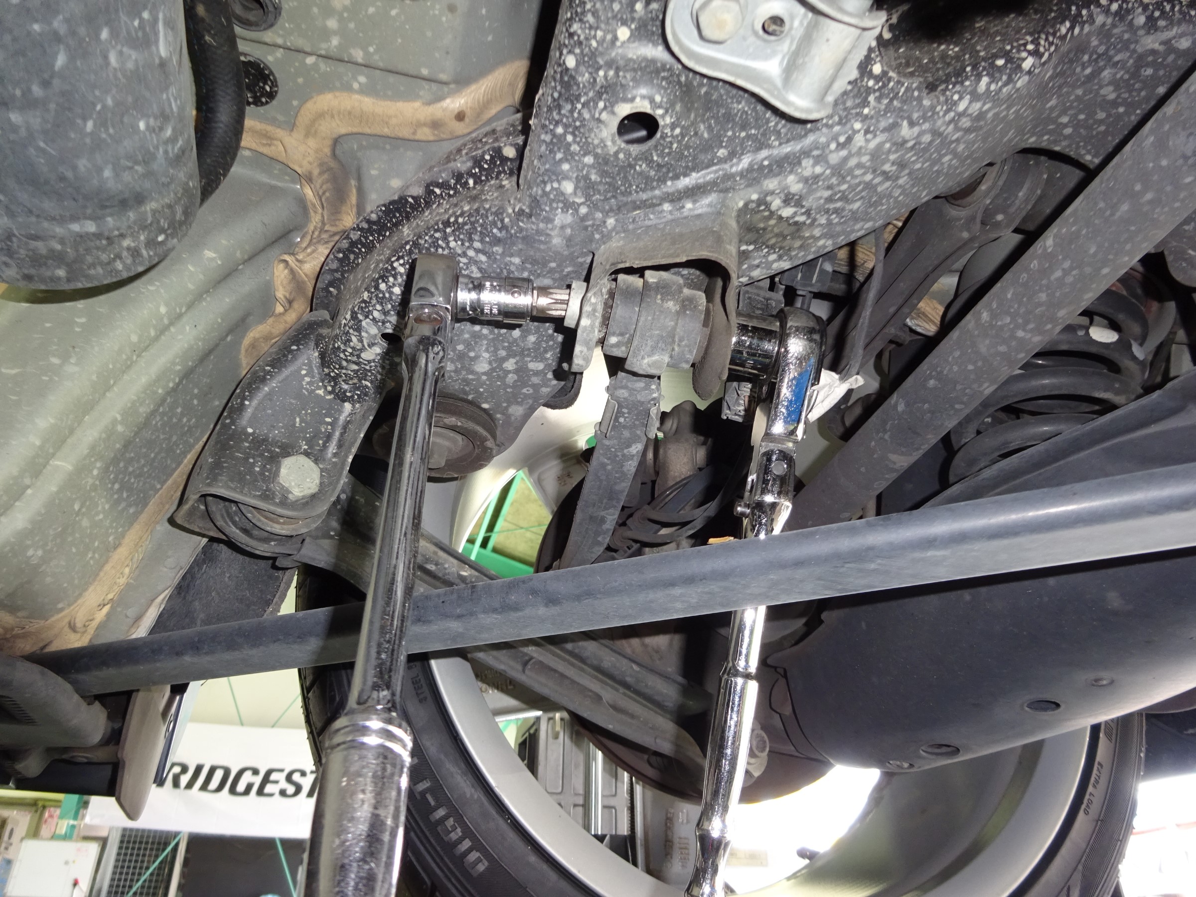 モチロンタイヤ交換を行ったのですが、ハンドルの不安定感と車が左に流れていくことをお客様が気にされていたので、コクピット十八番のアライメント調整を実施します。