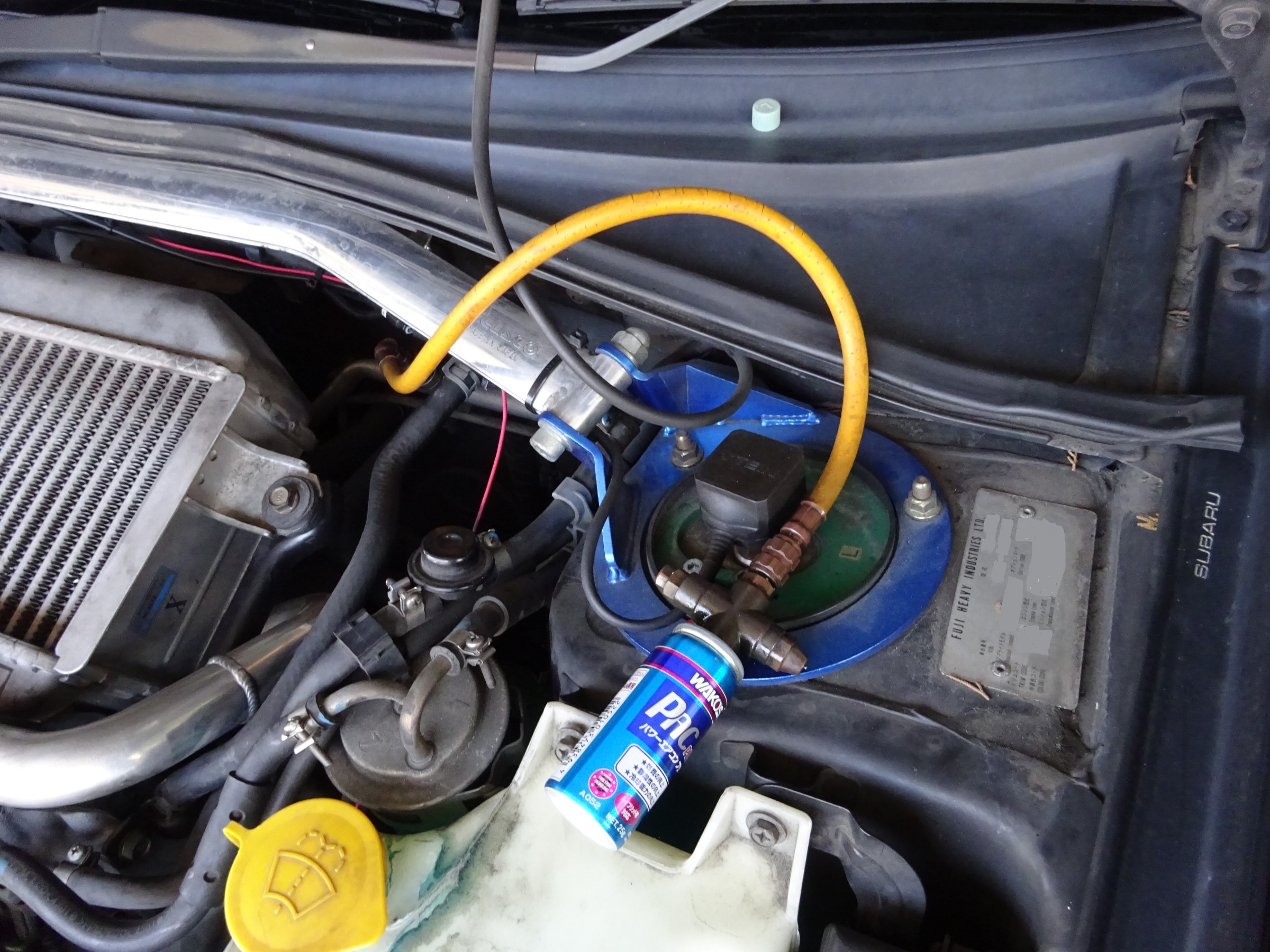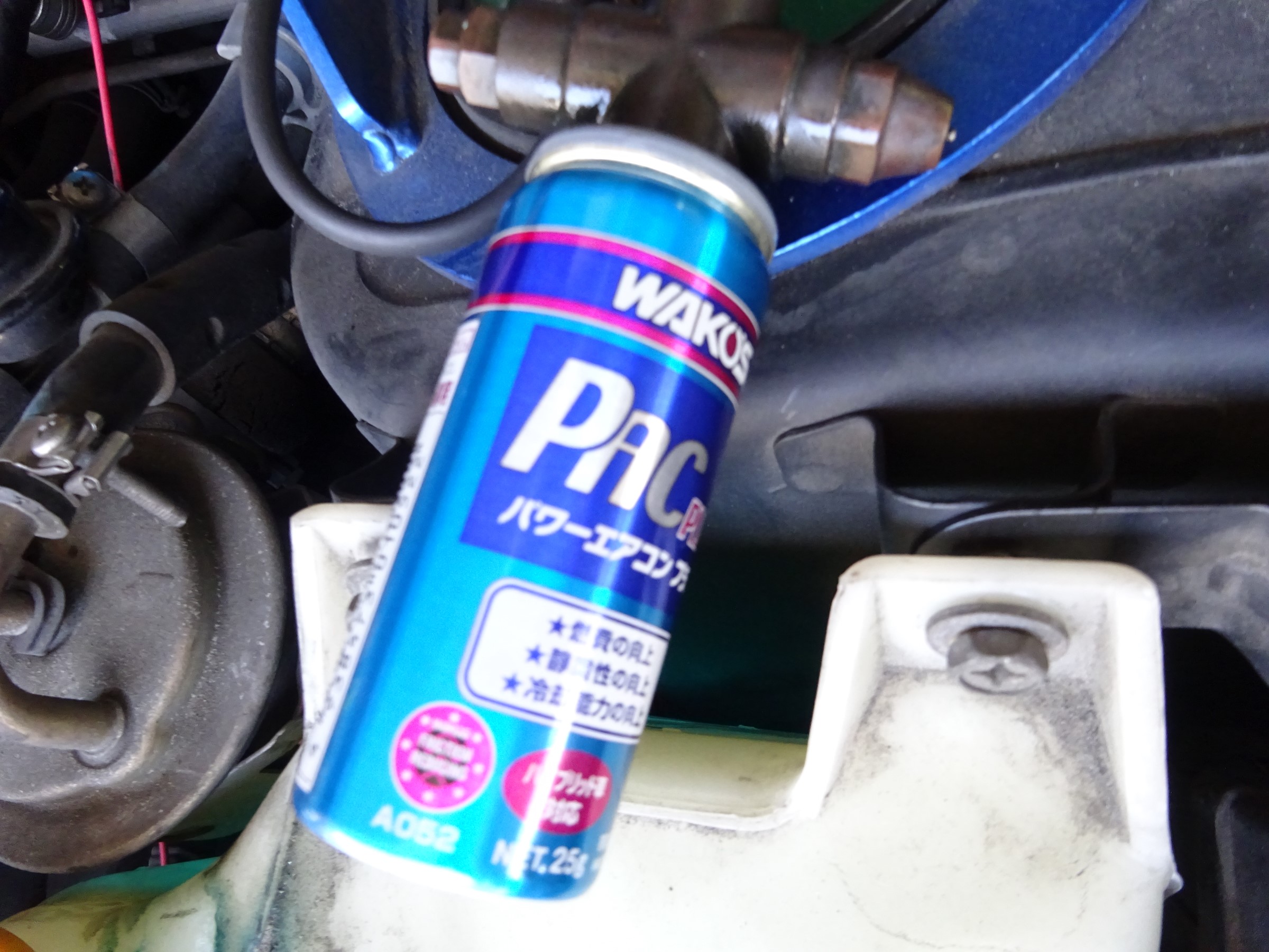 効きが不十分って事は無いですが、より冷え易く且つフリクションロス低減を狙い、WAKO'Sのエアコン添加剤、パワーエアコンプラスを注入します。