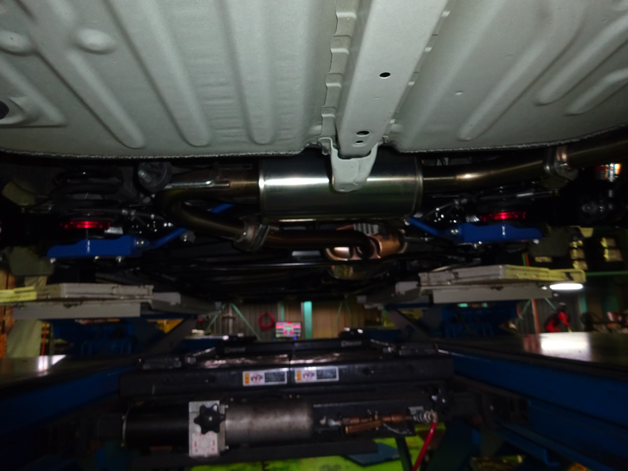 次はリヤのマフラー・スタビバー・サス周辺に施工、