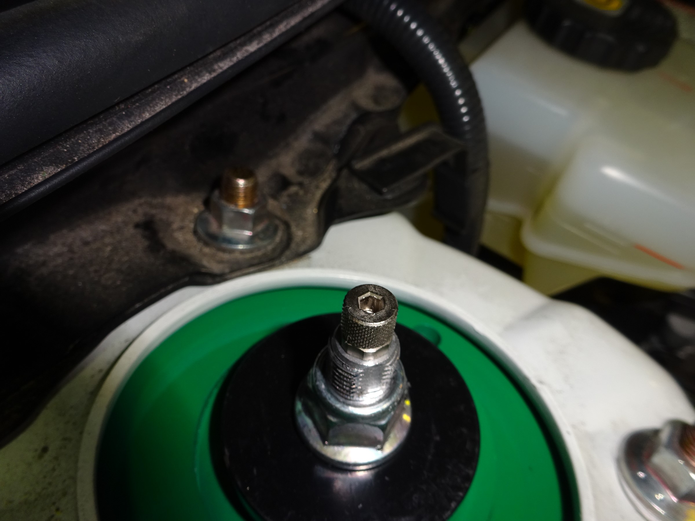 ボンネットを開けたらサスの頭が見えるので、上のゴムキャップを外したらダイヤルが有ります。